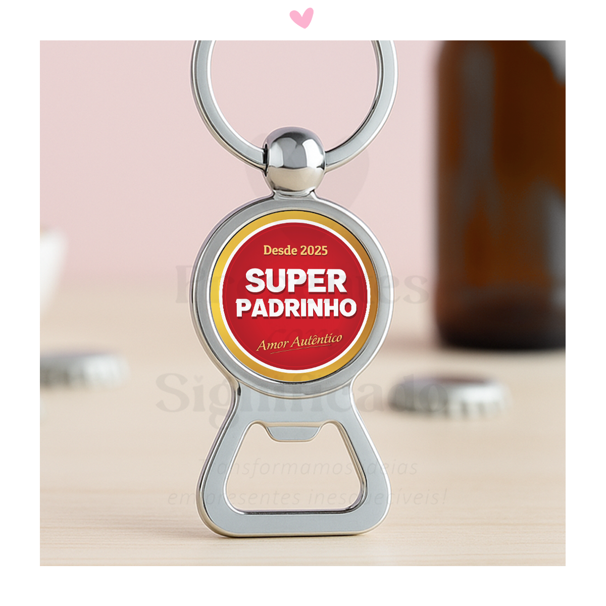 Abre-caricas em metal personalizado com texto "Super-Padrinho - Amor autêntico desde xxx"
