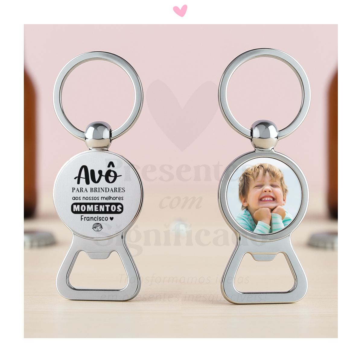 Abre-caricas em metal personalizado com foto/imagem na frente e gravação a gosto no verso. Adaptável para Padrinho, Pai, Tio, etc...