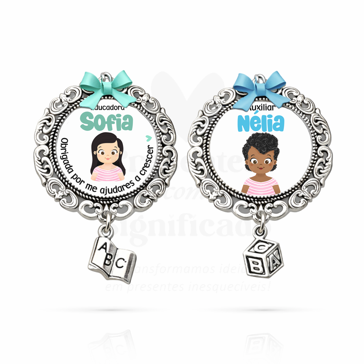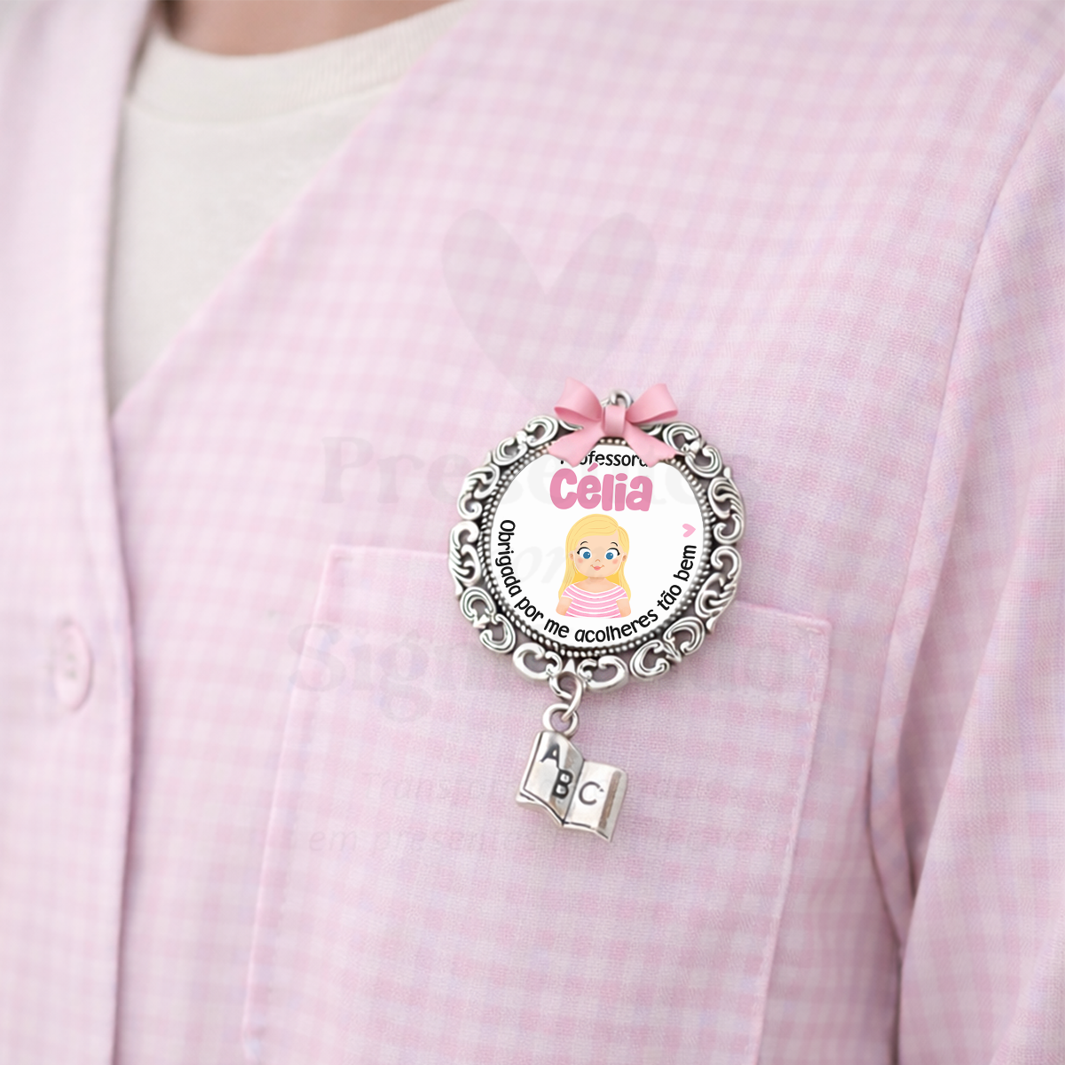 Alfinete em metal para usar na bata de trabalho c/ pendente alusivo à profissão (adaptamos de acordo com a mesma). Personalize com o nome, cargo (opcional) e uma frase de agradecimento (opcional também - evite frases longas por questões de legibilidade pois o produto é pequeno).