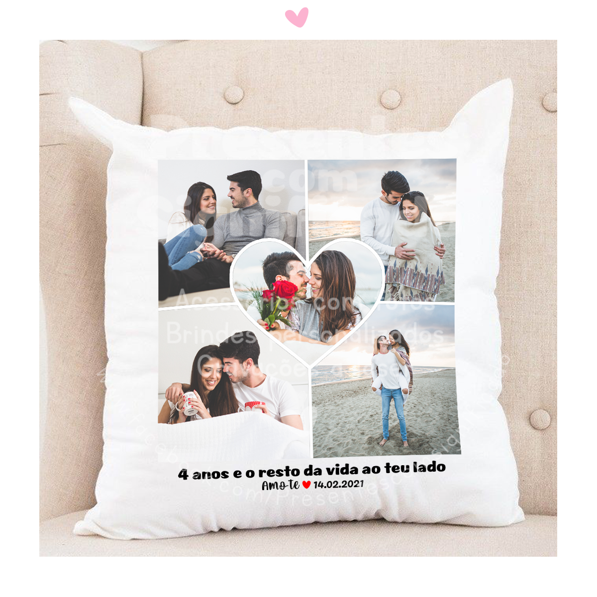 Fronha de almofada em tecido c/ montagem de fotos e texto. Disponível almofada completa ou só fronha.