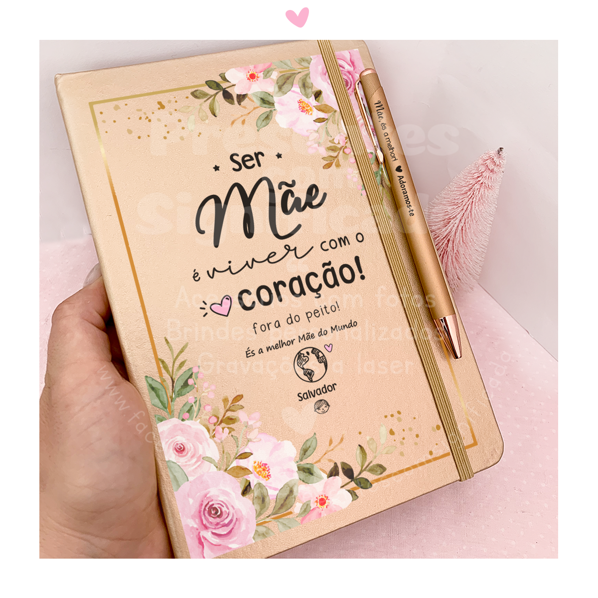 Bloco de notas formato A5 c/ 80 folhas lisas com capa metalizada (disponível em 3 cores).. Disponível caneta a combinar. Pode personalizar todos os textos. Possível adicionar foto.