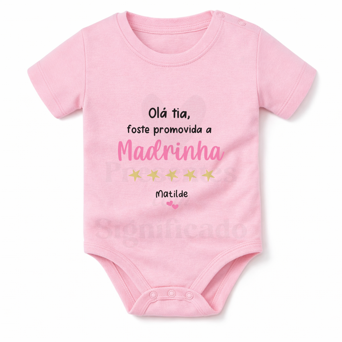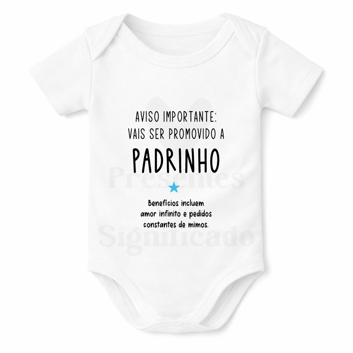 Body infantil em tecido 100% algodão personalizado com texto para convite de madrinha/padrinho. Pode personalizar o texto a seu gosto. Fecha com botões de pressão em baixo.