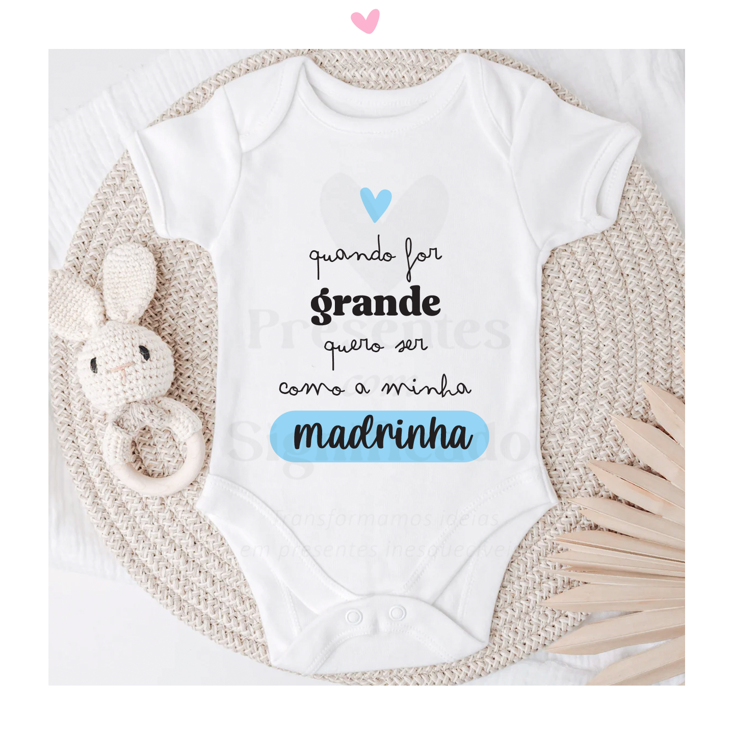 Body infantil em tecido 100% algodão tamanho 0 (recém nascido) personalizado com texto a seu gosto (igual ou diferente do exemplo). Fecha com botões de pressão em baixo.