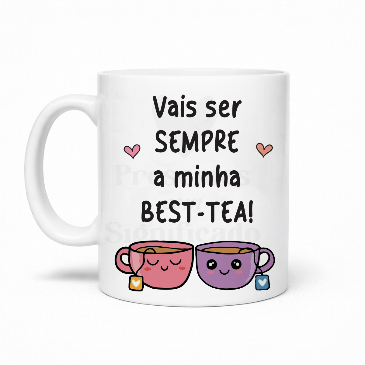 Caneca de cerâmica branca com frase "Vais ser sempre a minha BEST-TEA!". Possível adicionar dedicatória no verso.