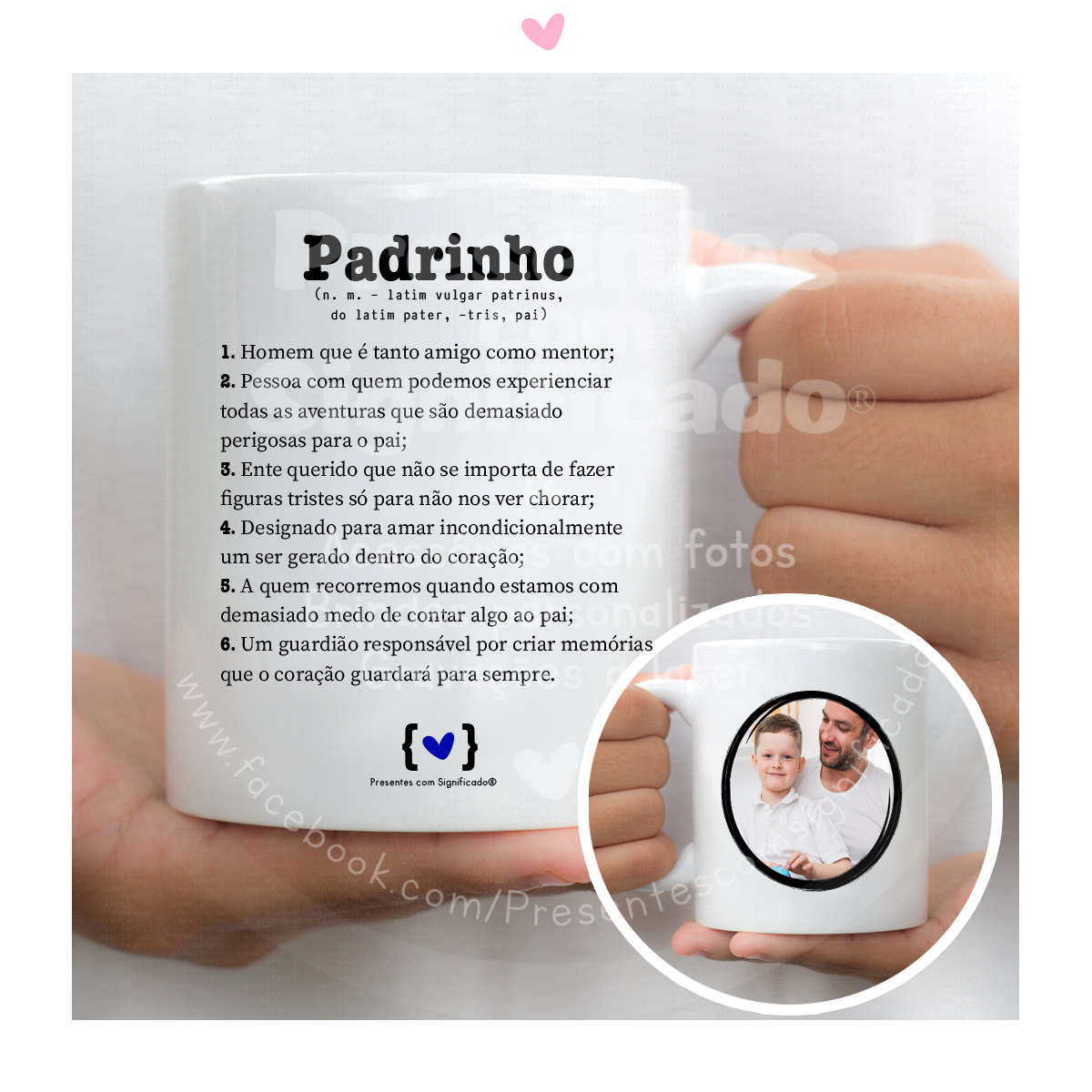 Caneca de cerâmica personalizada com definição de "Padrinho". Possível fazer só com texto ou acrescentar foto.