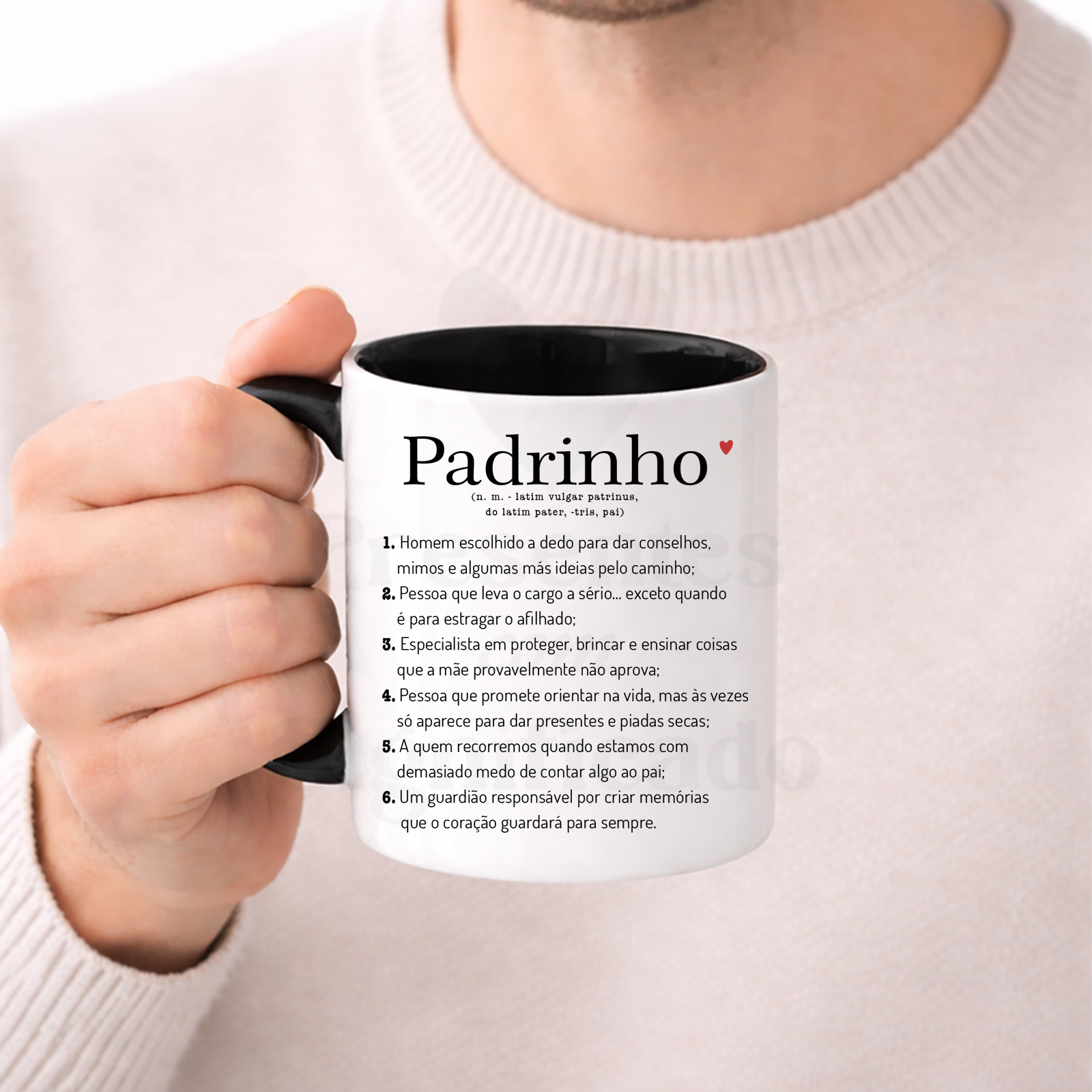 Caneca de cerâmica personalizada com definição de "Padrinho". Possível alterar um ou mais pontos, fazer só com texto ou acrescentar foto nas costas.