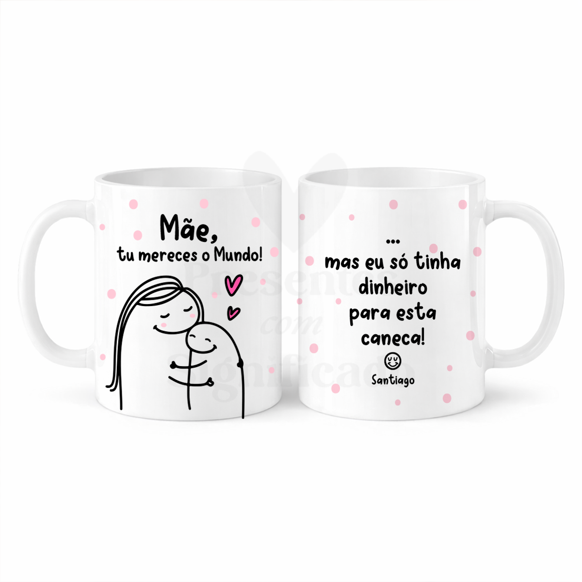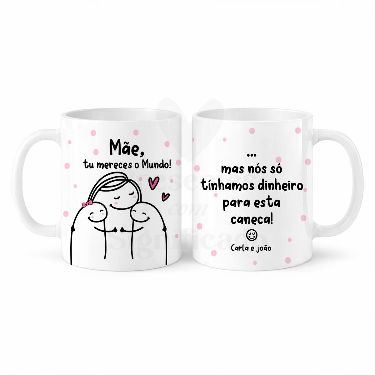 Caneca de cerâmica com imagem Flork de Mãe e filhos e frase "Mãe, tu mereces o Mundo, mas nós só tínhamos dinheiro para esta caneca". No campo da personalização indique os nomes. Adaptável para tia, madrinha, avó, etc...