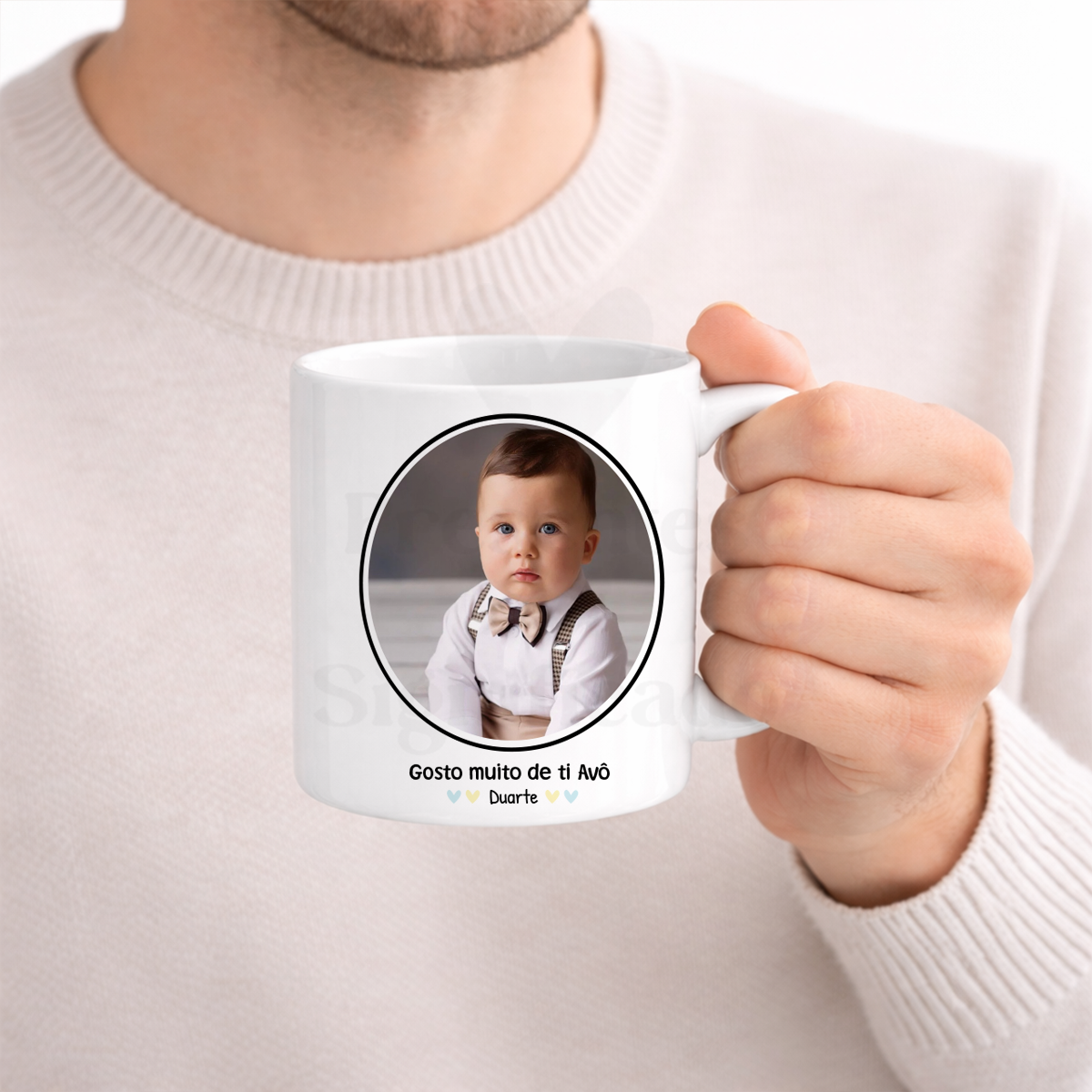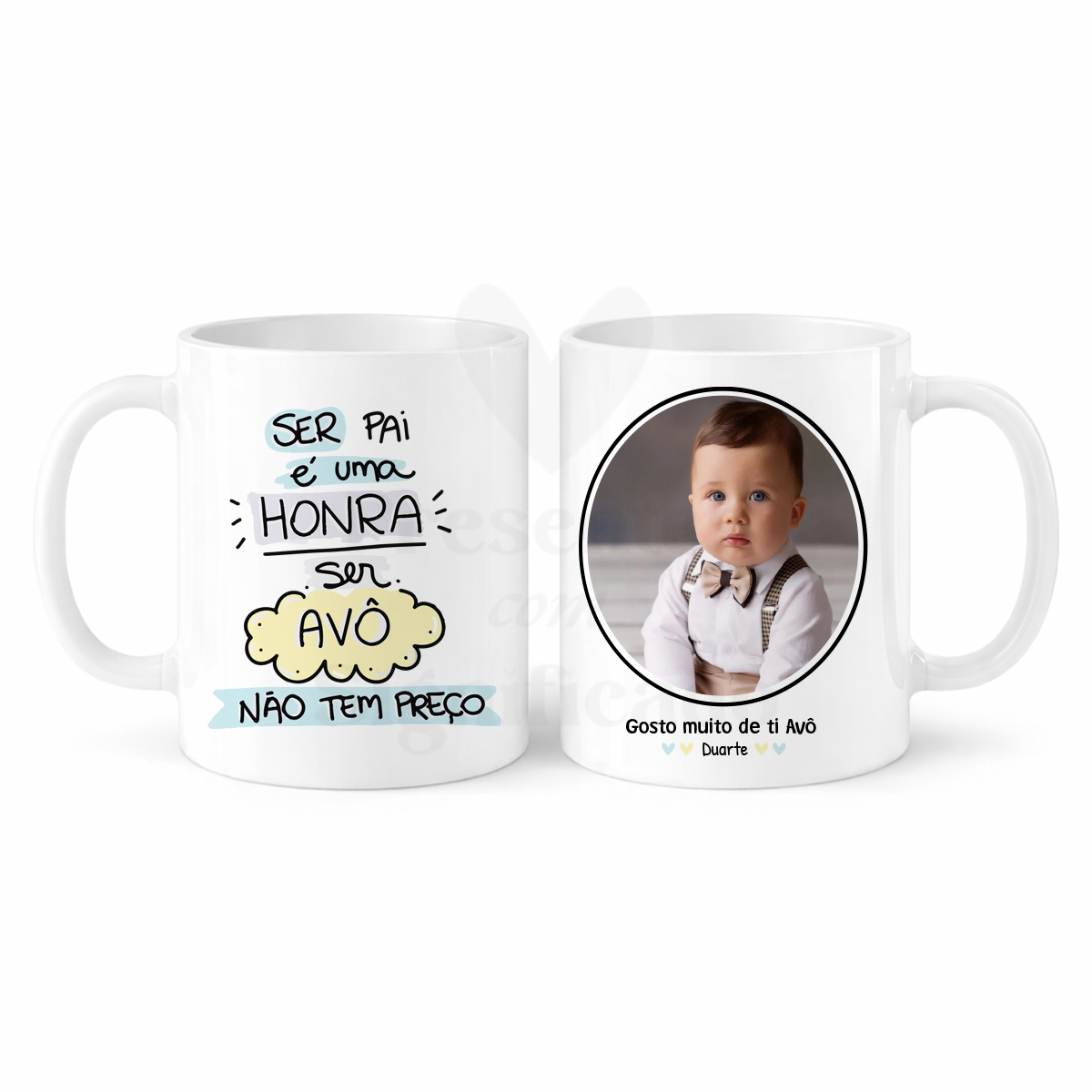 Caneca de cerâmica personalizada com frase "Ser Pai é uma honra, ser avô não tem preço". Com foto. Possível alterar dedicatória final.