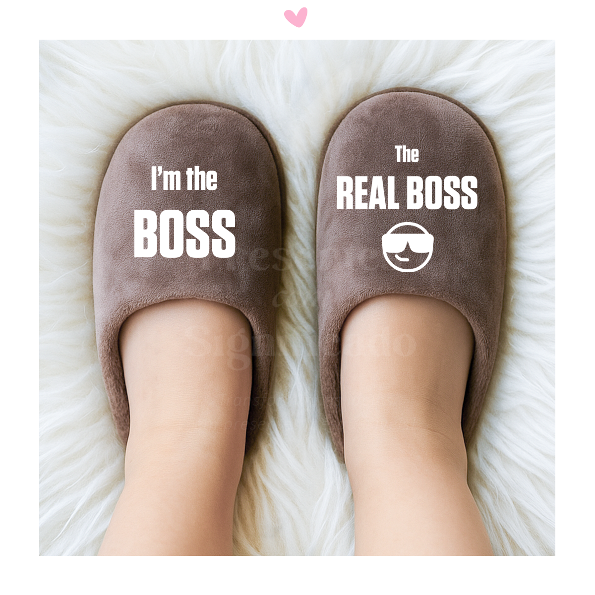 Par de chinelos de quarto de criança em cor taupe personalizados com qualquer frase ou imagem a gosto. Exterior em pelinho e interior forrado com pelo quentinho; sola de borracha branca antiderrapante c/ desenho.