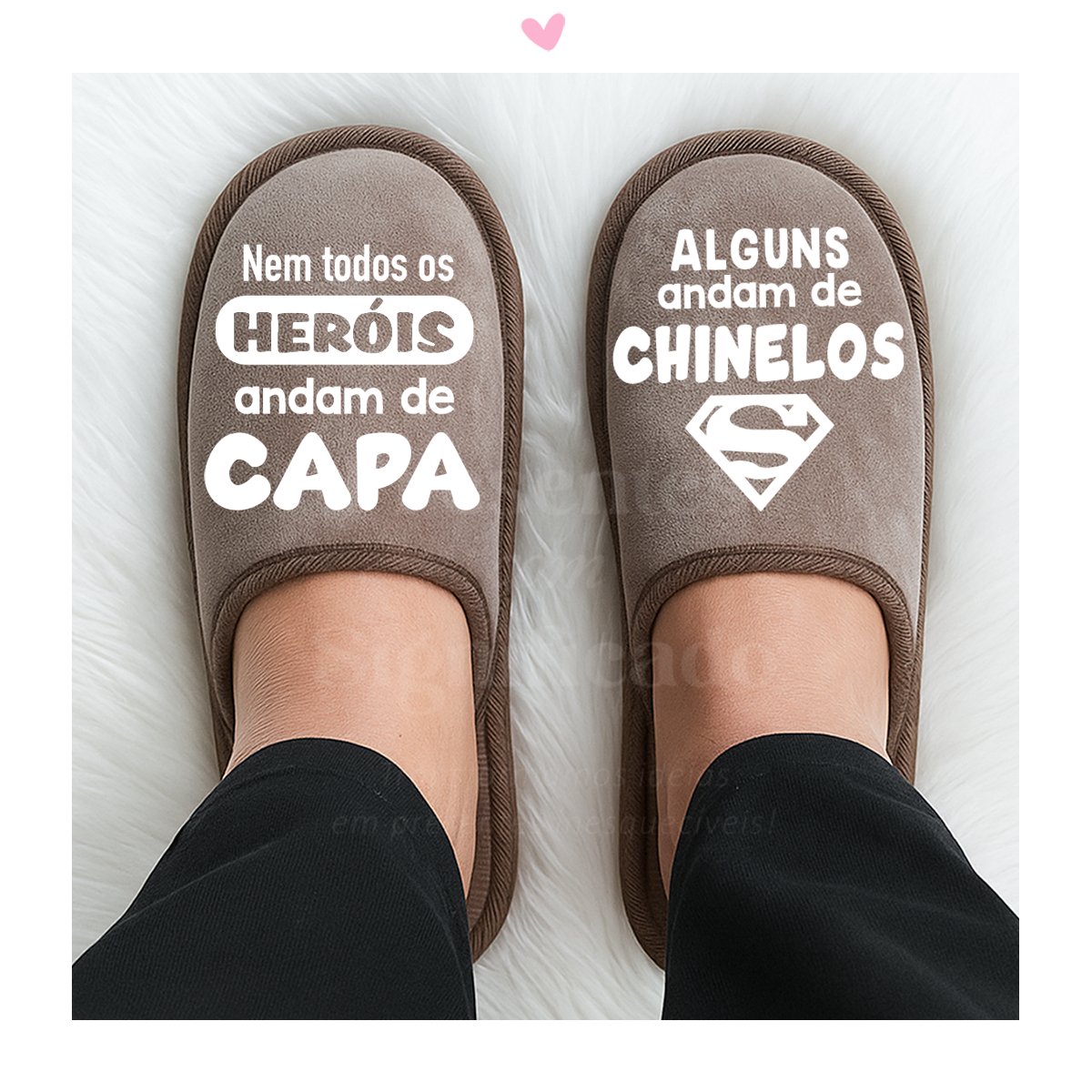Par de chinelos de quarto personalizados com qualquer frase. Exterior aveludado e interior forrado macio. Solas de borracha antiderrapante. Possível adicionar foto!