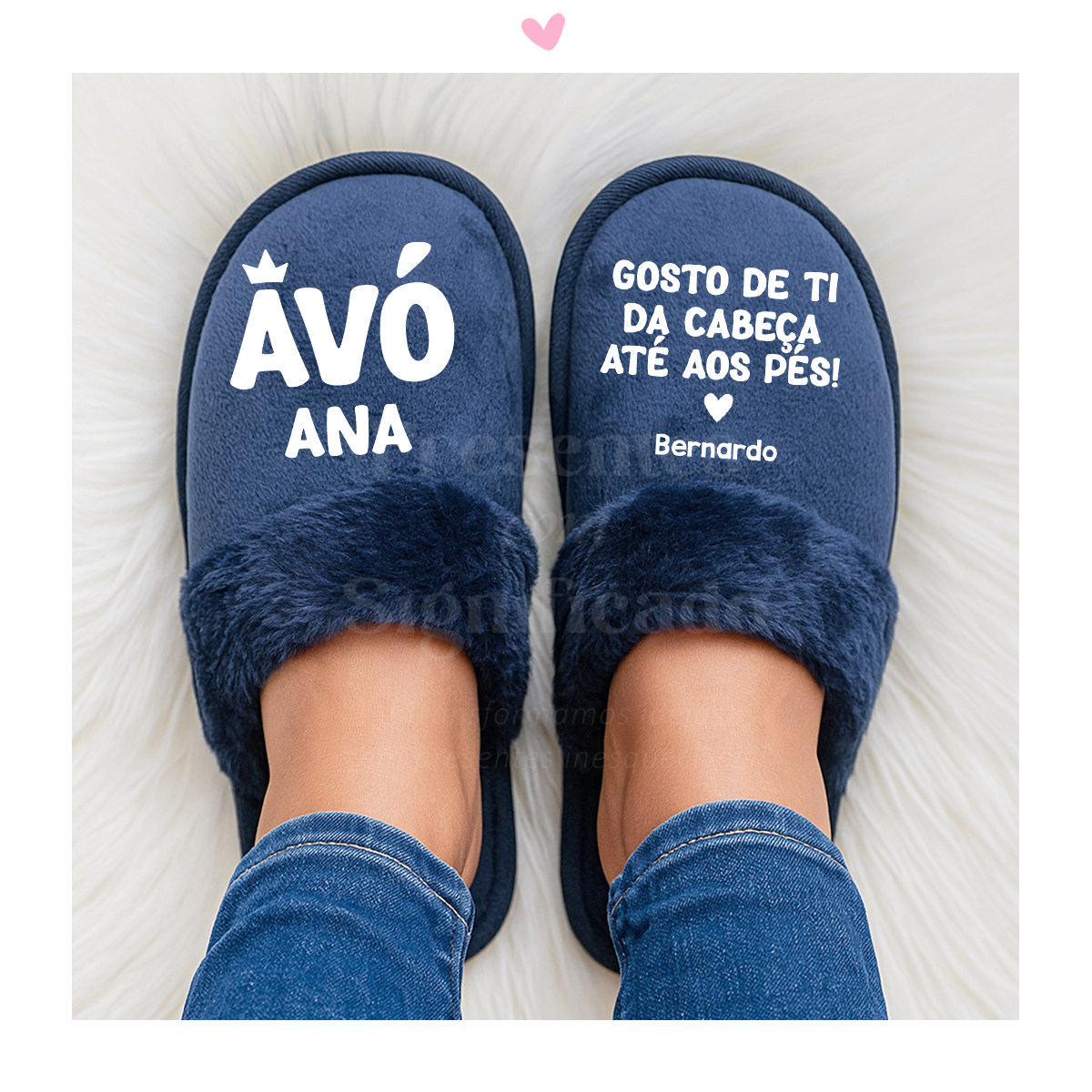Par de chinelos de quarto personalizados com qualquer frase a seu gosto. Exterior em tecido tipo veludo com faixa de pêlo baixo e sola interior ligeiramente almofadada. Solas em EVA/espuma. ATENÇÃO ⬇️