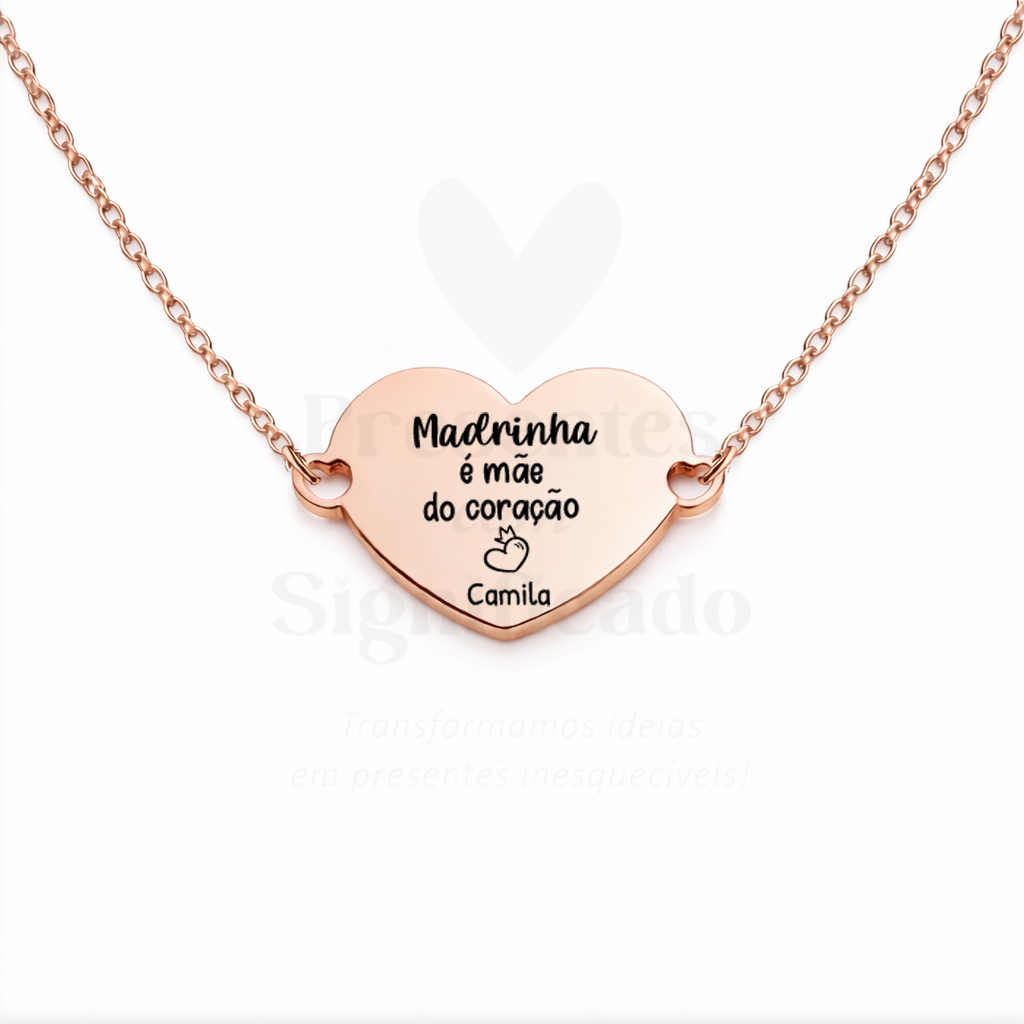 Colar curto em aço inoxidável c/ medalha formato coração gravada com texto a seu gosto. Possível acrescentar gravação no verso. Disponível em três tons.