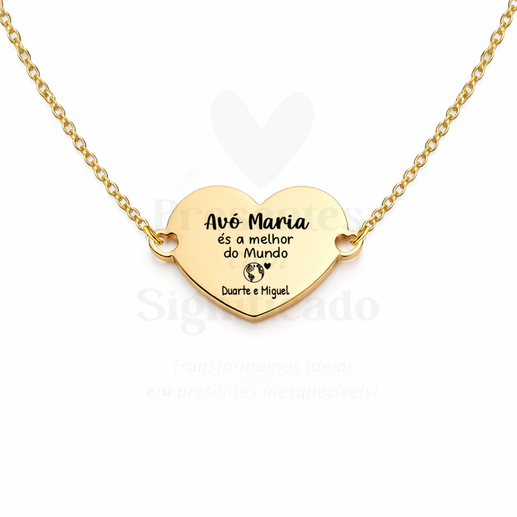 Colar em aço c/ coração gravado