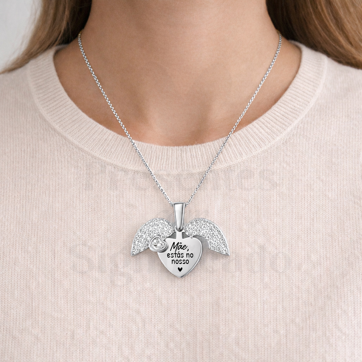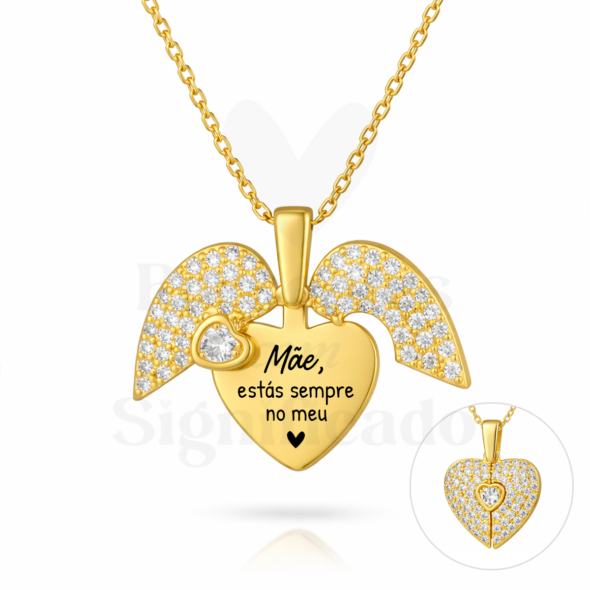 Colar coração com asas