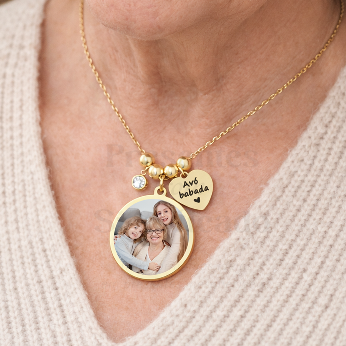 Colar redondo aço inox. c/ fotografia a cores
