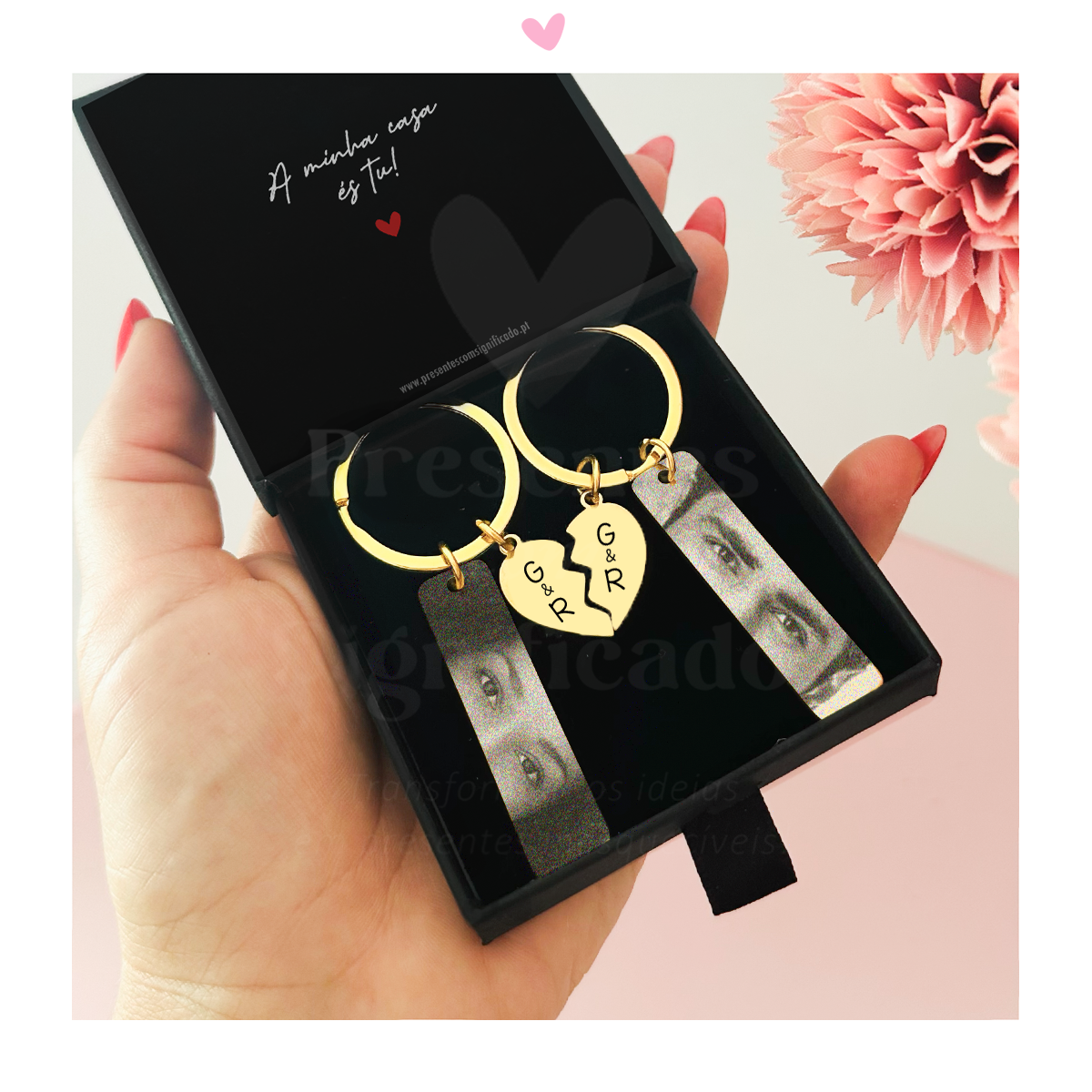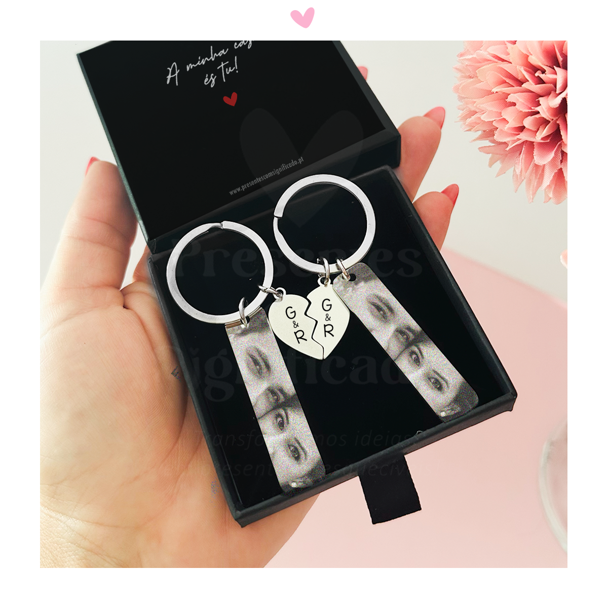 Conjunto de porta-chaves simples p/ casal c/ fotogravação