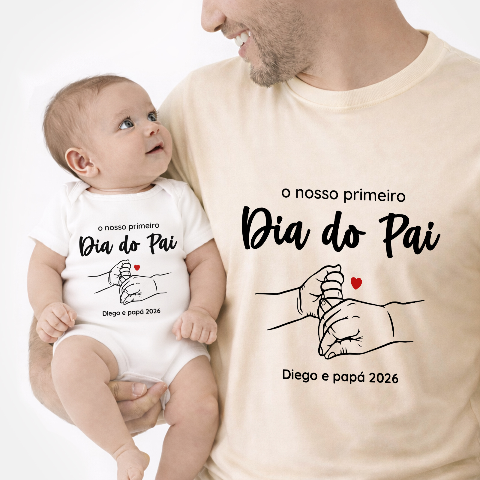 Conjunto Pai e Filho(a) Personalizado - O nosso primeiro Dia do Pai