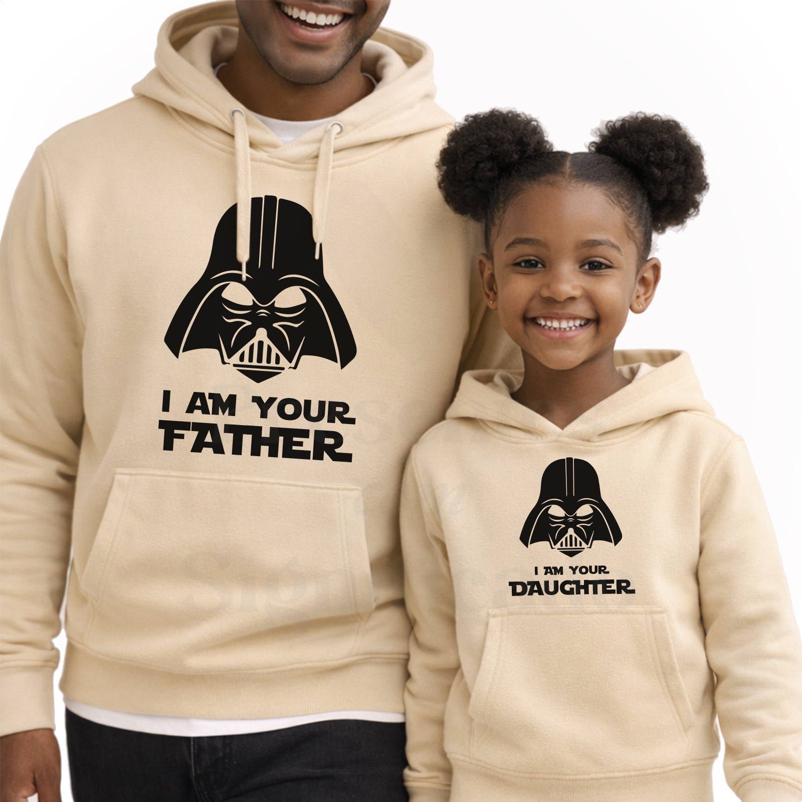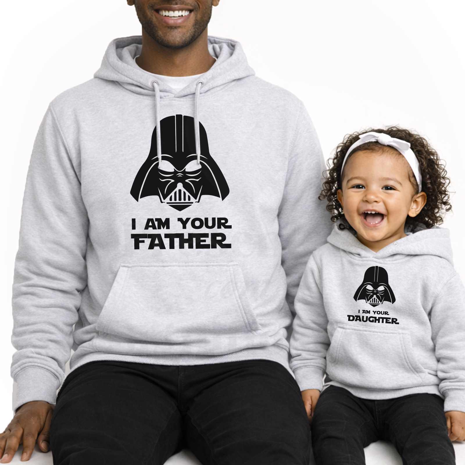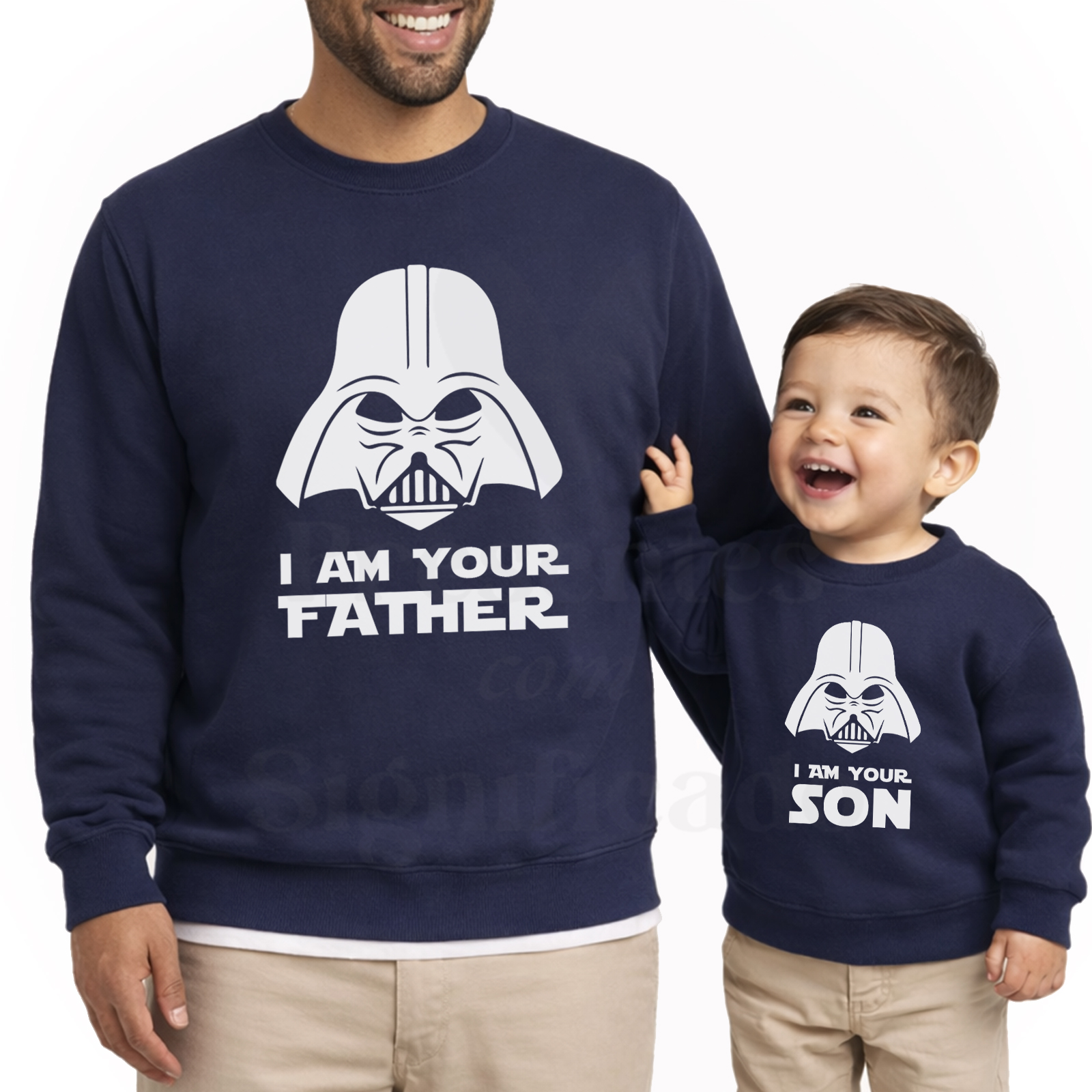 Conjunto de Sweatshirts ou Hoodies em algodão e poliéster de 300g. Tecido cardado por dentro com punhos e cós reforçado. Personalizado com texto "I am your Father / I am your son/daughter".