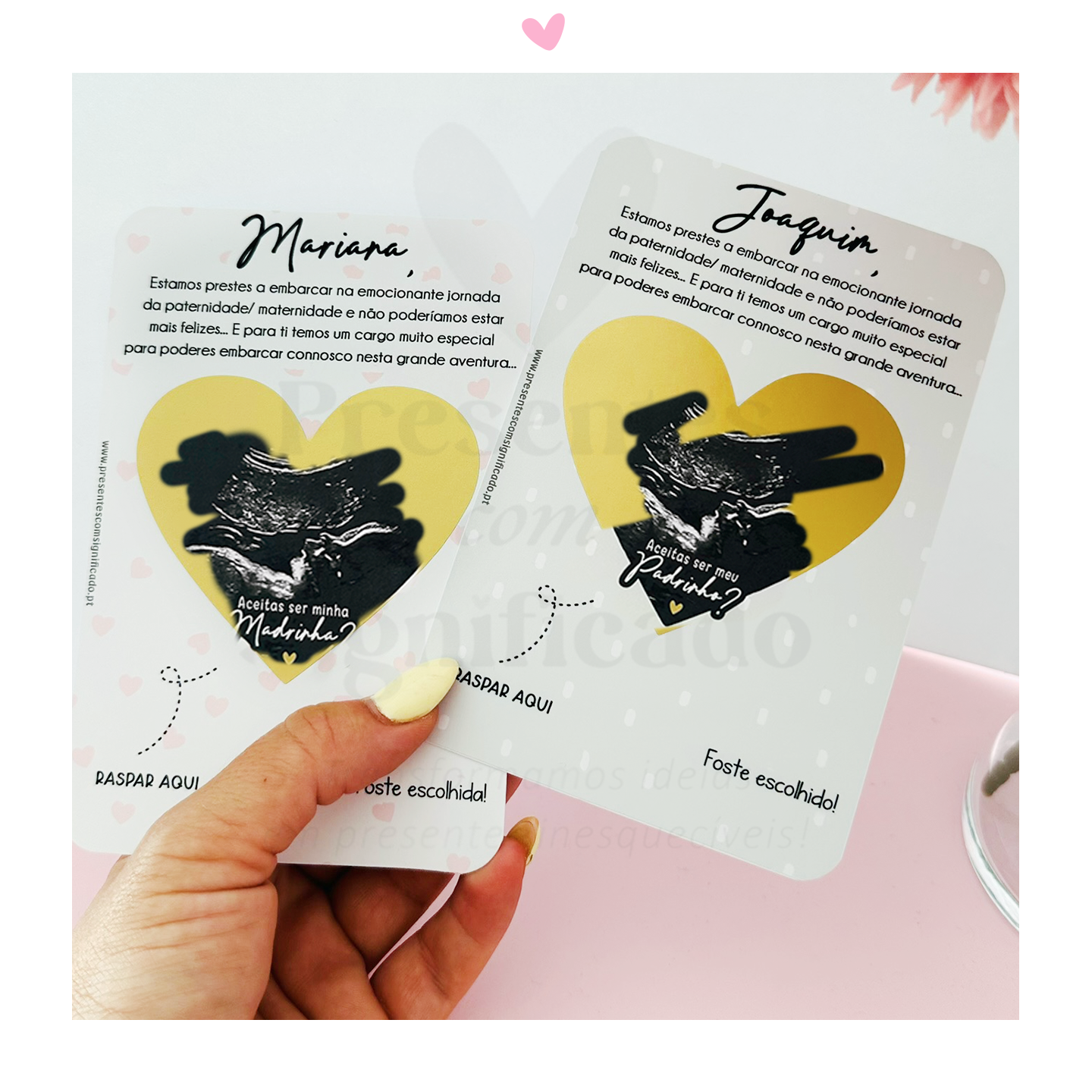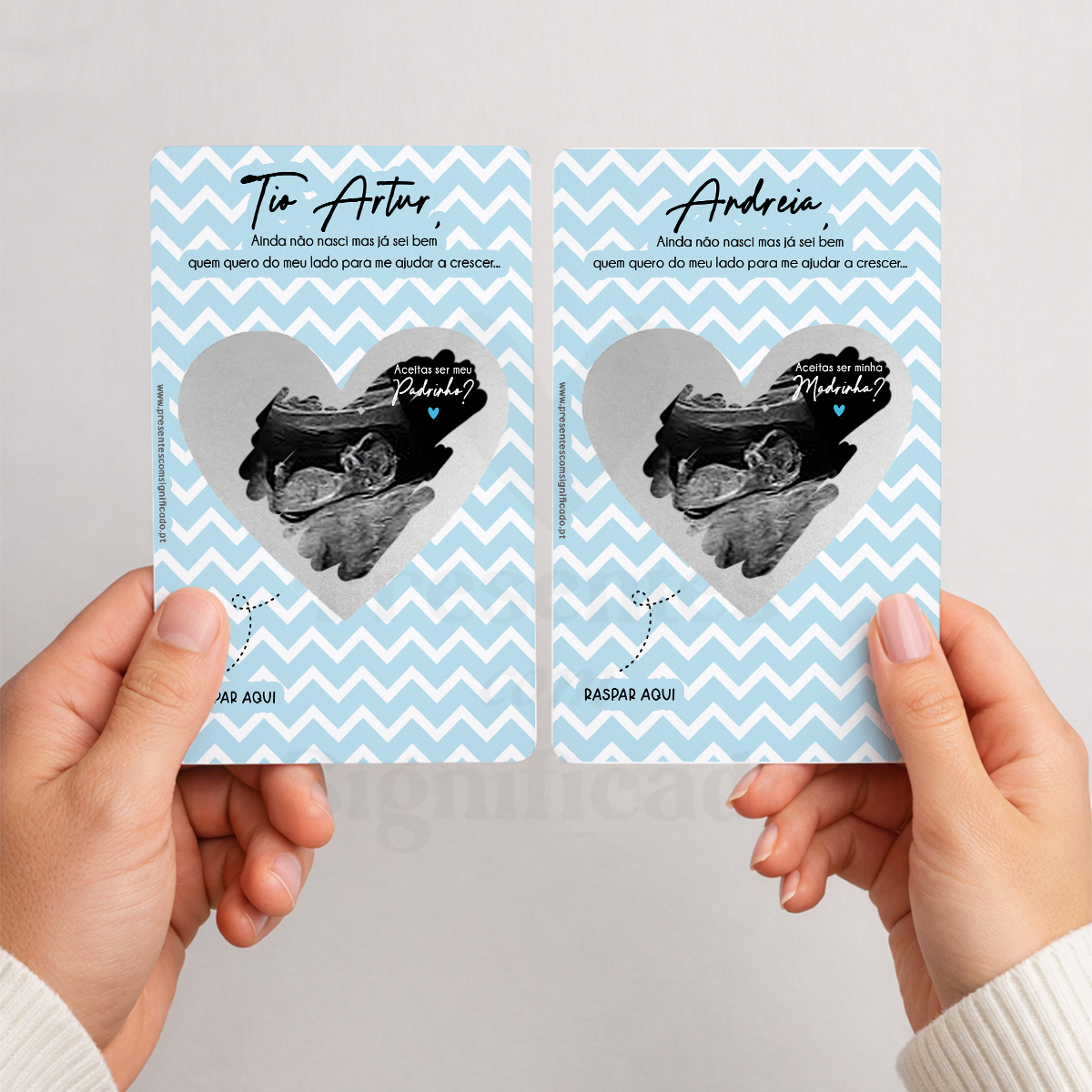 A forma mais original de convidar alguém ou de anunciar uma boa nova! Os nossos convites/anúncios em formato raspadinha são o presente ideal! Personalize o texto do topo e a imagem (foto ou ecografia) que esconde a raspadinha e surpreenda alguém especial :)