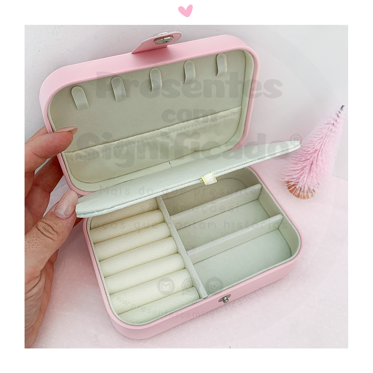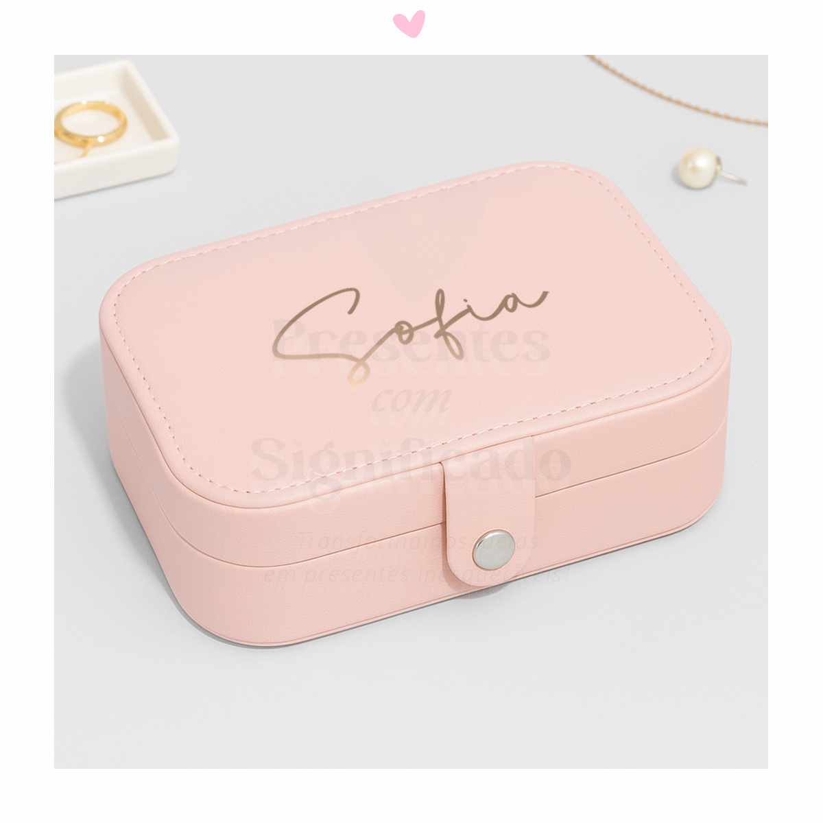 Guarda-jóias em pele sintética cor rosa salmão com divisórias para guardar anéis, brincos, colares... Personalizado com nome, palavra, data ou texto até um máximo de 5 palavras.