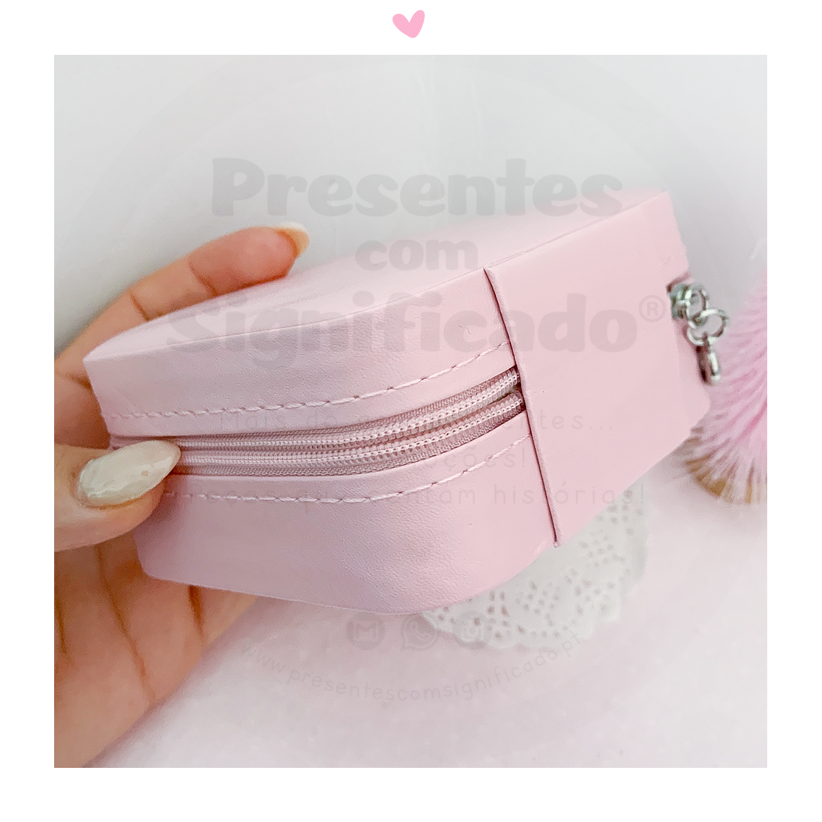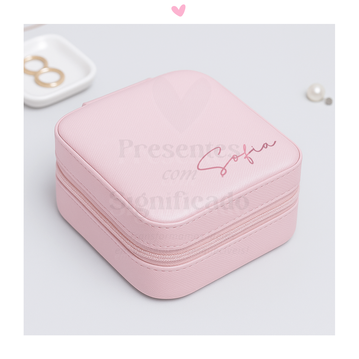 Mini Guarda-jóias em pele sintética cor rosa com divisórias para guardar anéis, brincos, colares... Personalizado com nome, palavra, data ou texto até um máximo de 5 palavras.