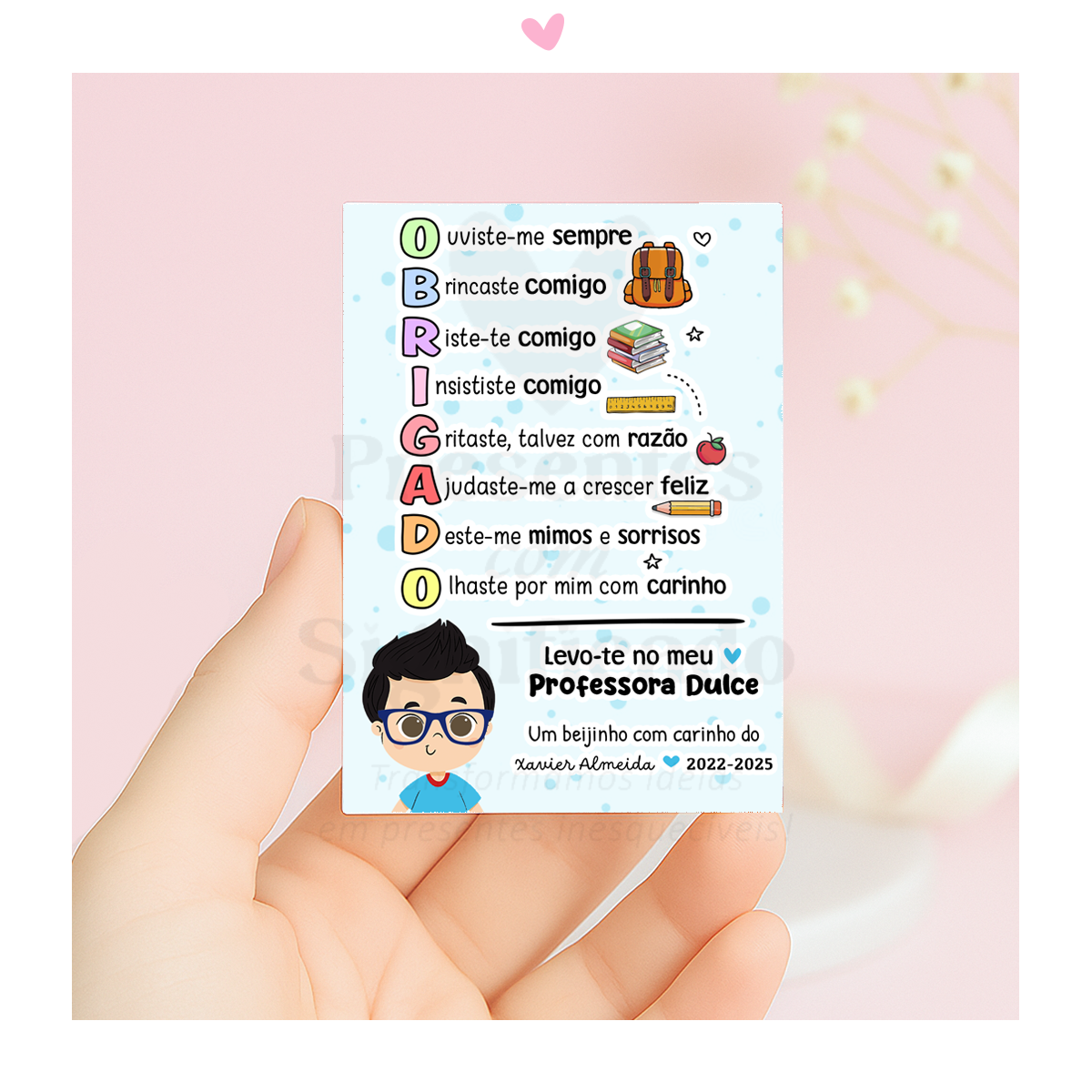 Íman resinado maleável (não quebra) disponível em 2 tamanhos com texto de agradecimento.. Pode personalizar os nomes e adaptar para Educadora, Professora, Auxiliar, Catequista...