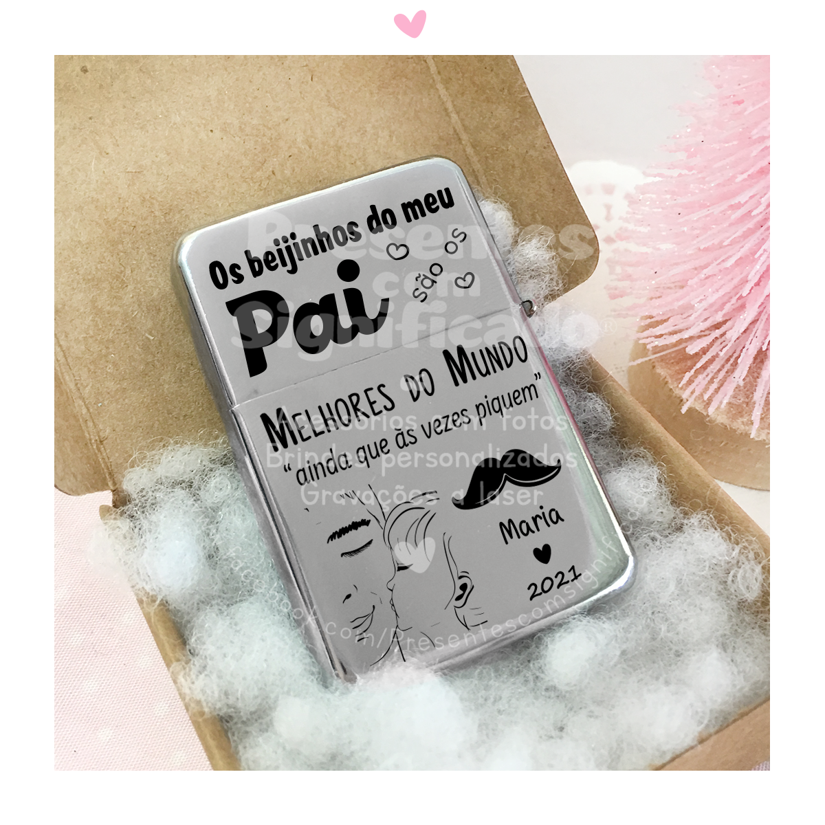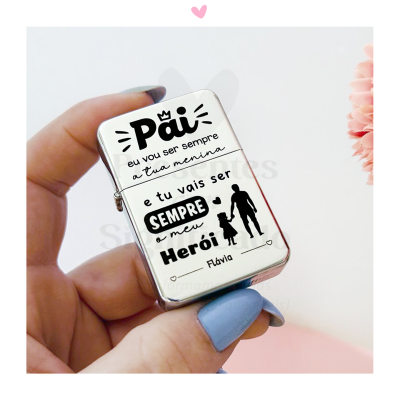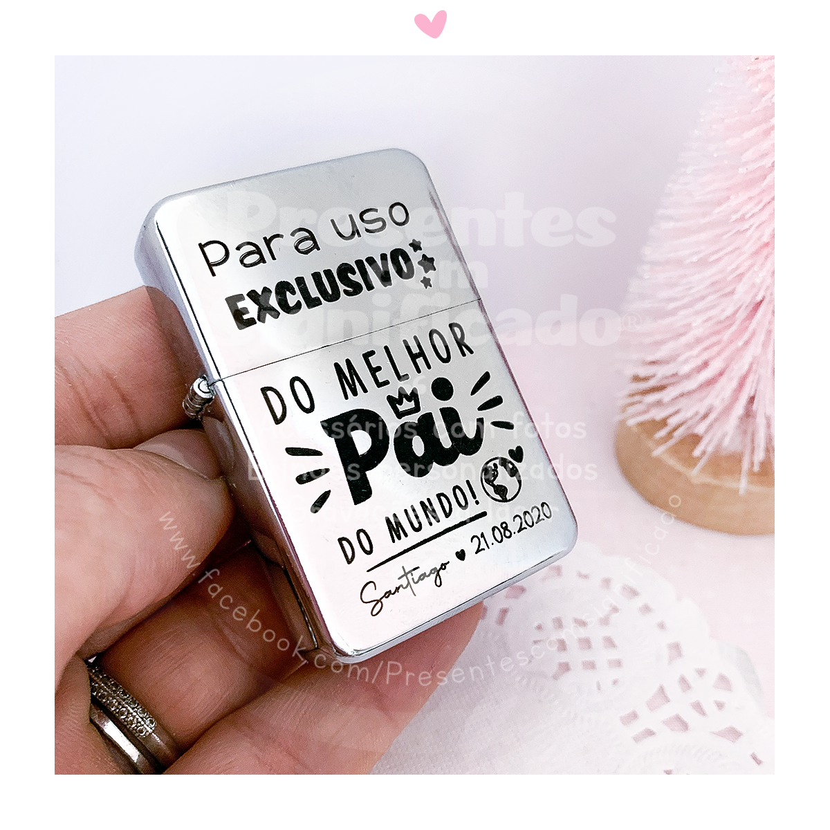 Isqueiro de metal recarregável c/ gravação. Não inclui carga!
