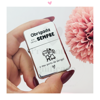 Isqueiro de metal recarregável c/ gravação. Não inclui carga!