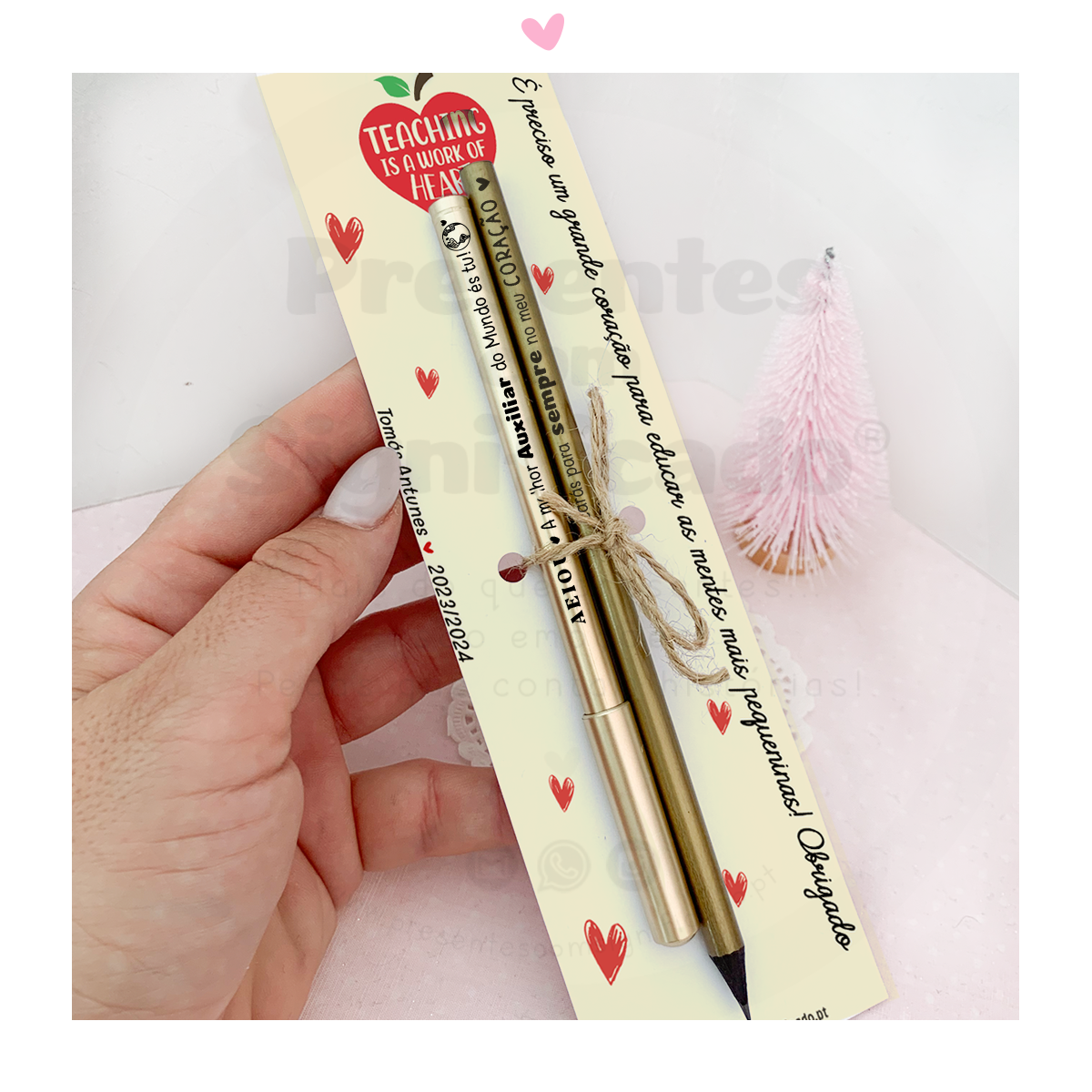 Kit Escolar Agradecimento - Lápis de carvão + Caneta de gel