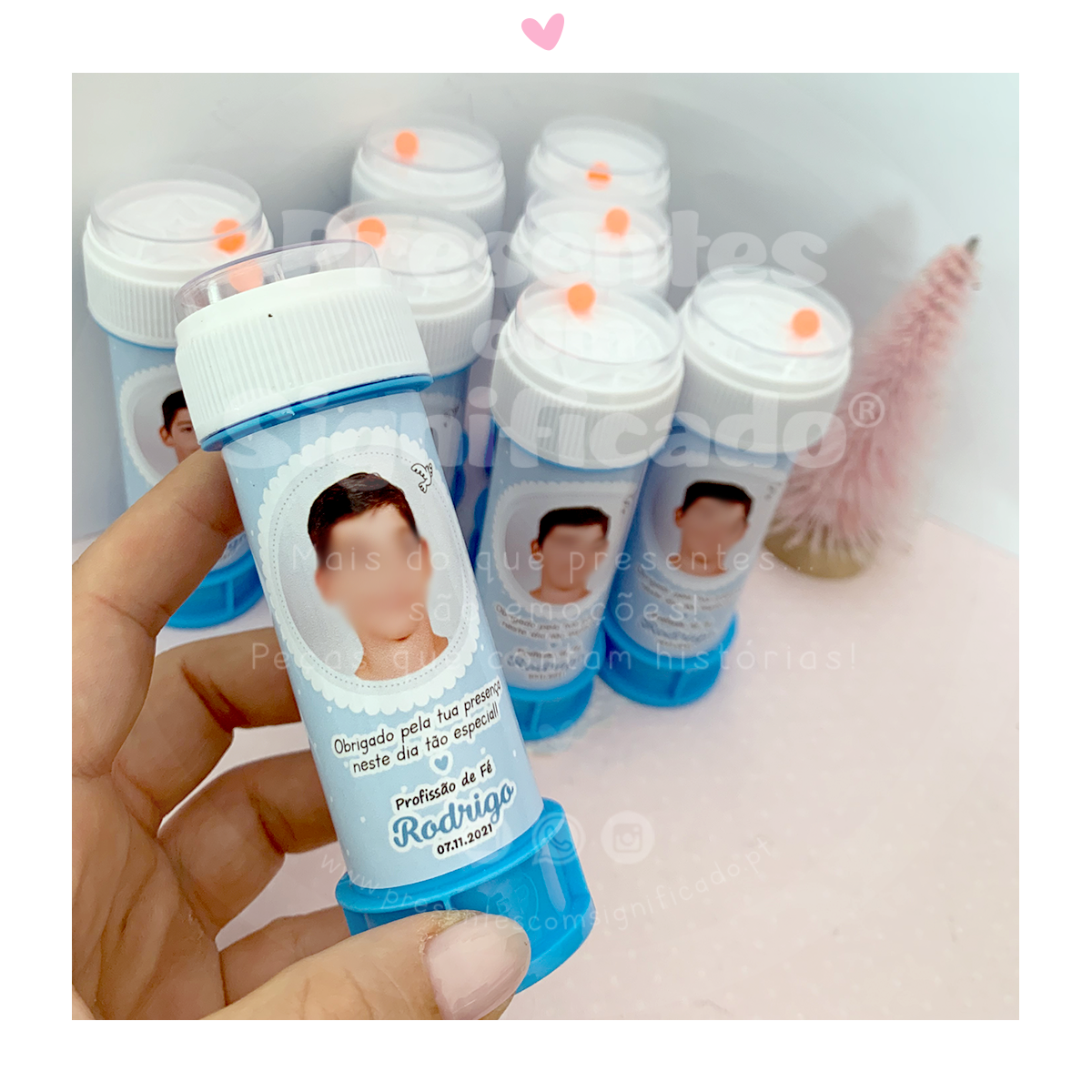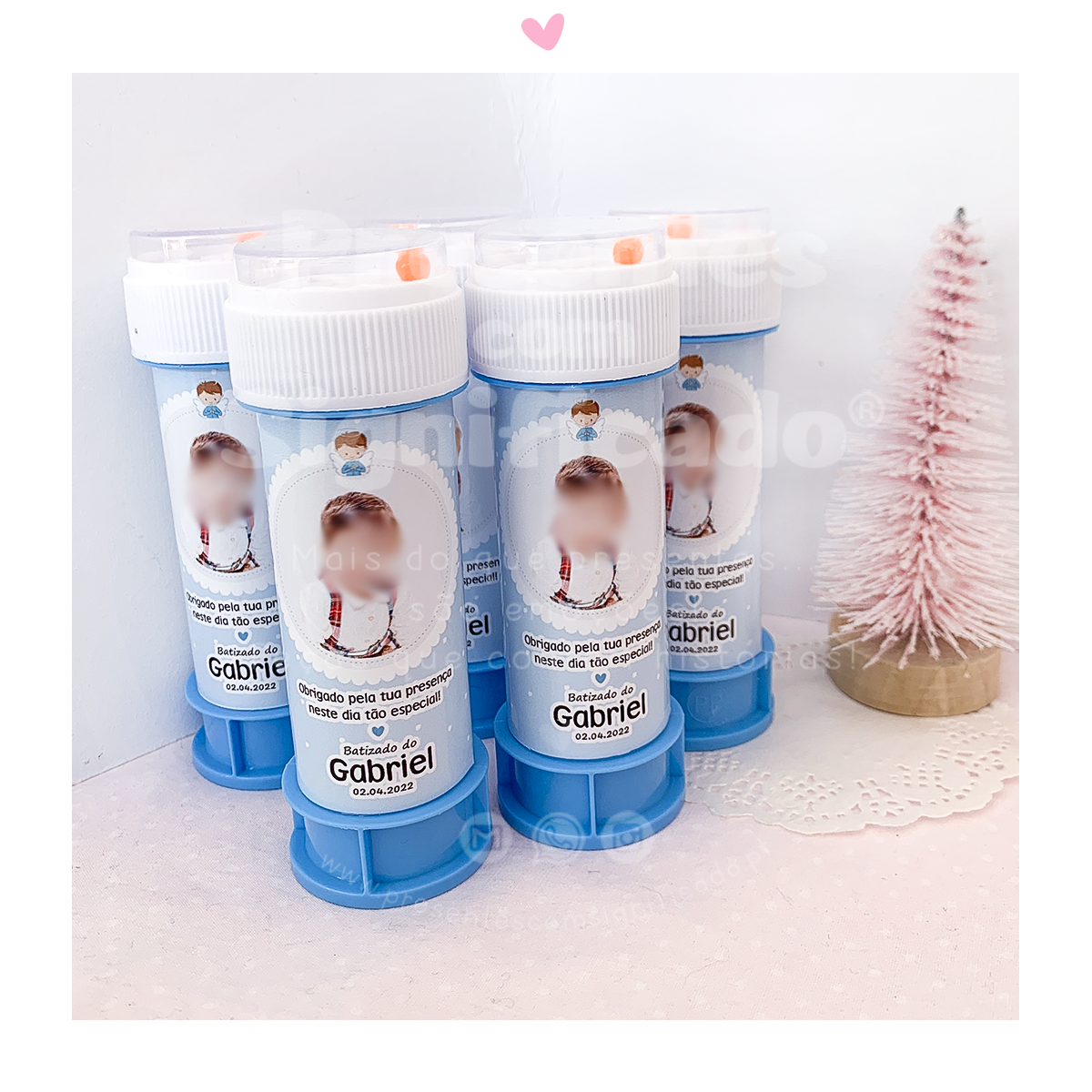 Sugestão de miminho para os mais pequenos em qualquer evento. Tubo de bolas de sabão para os mais pequenos se divertirem. Inclui líquido. Personalizamos com o tema que quiser.