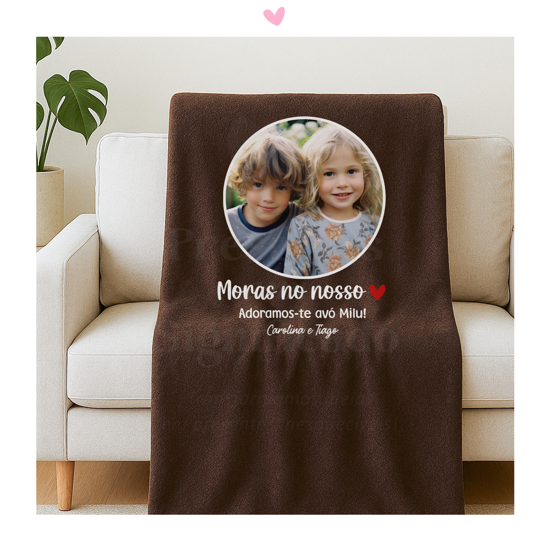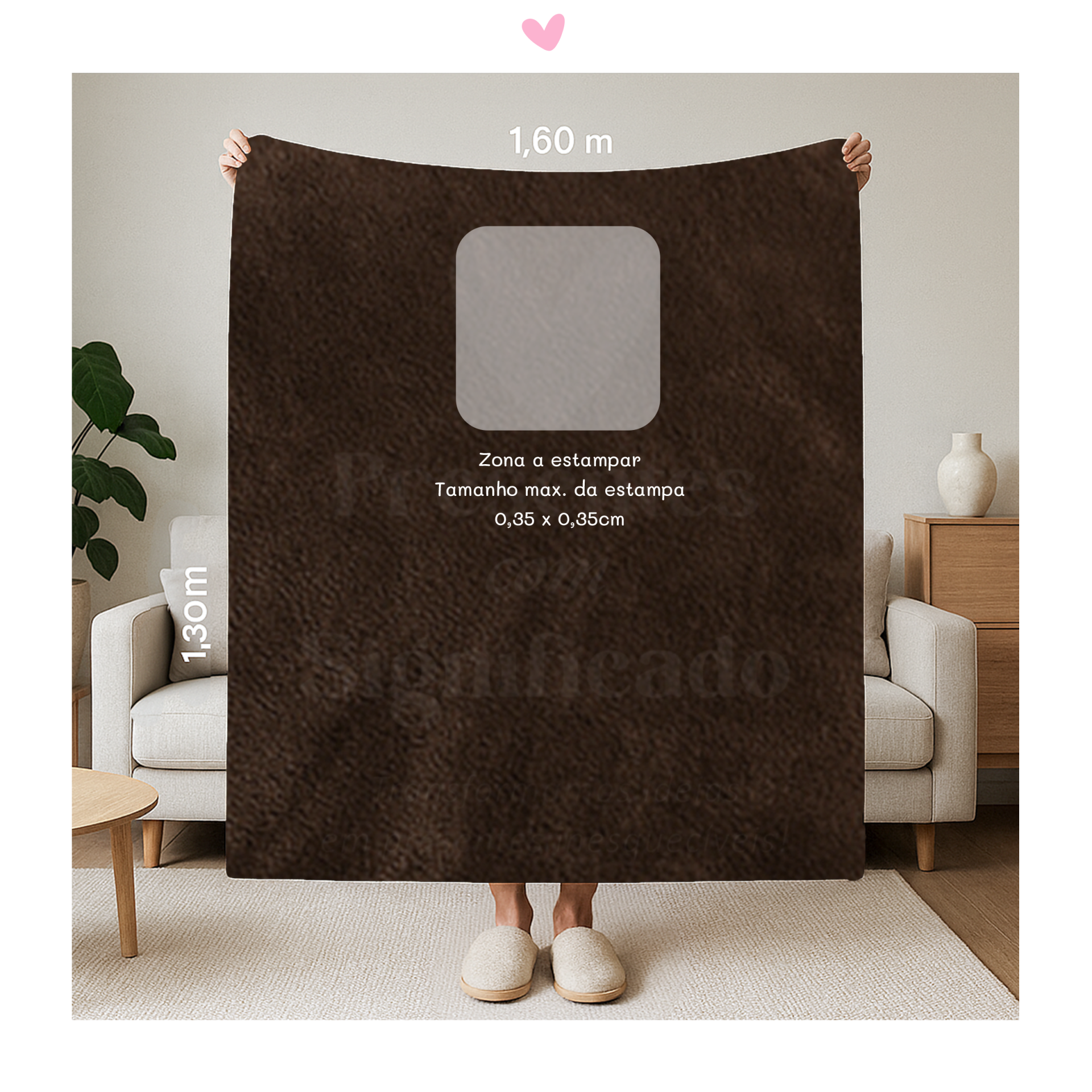 Manta polar com 1,60 x 1,30m, cor castanha, interior com pelinho mais comprido e personalizada com texto a seu gosto ou igual ao exemplo (possível adiconar foto mediante custo extra).
