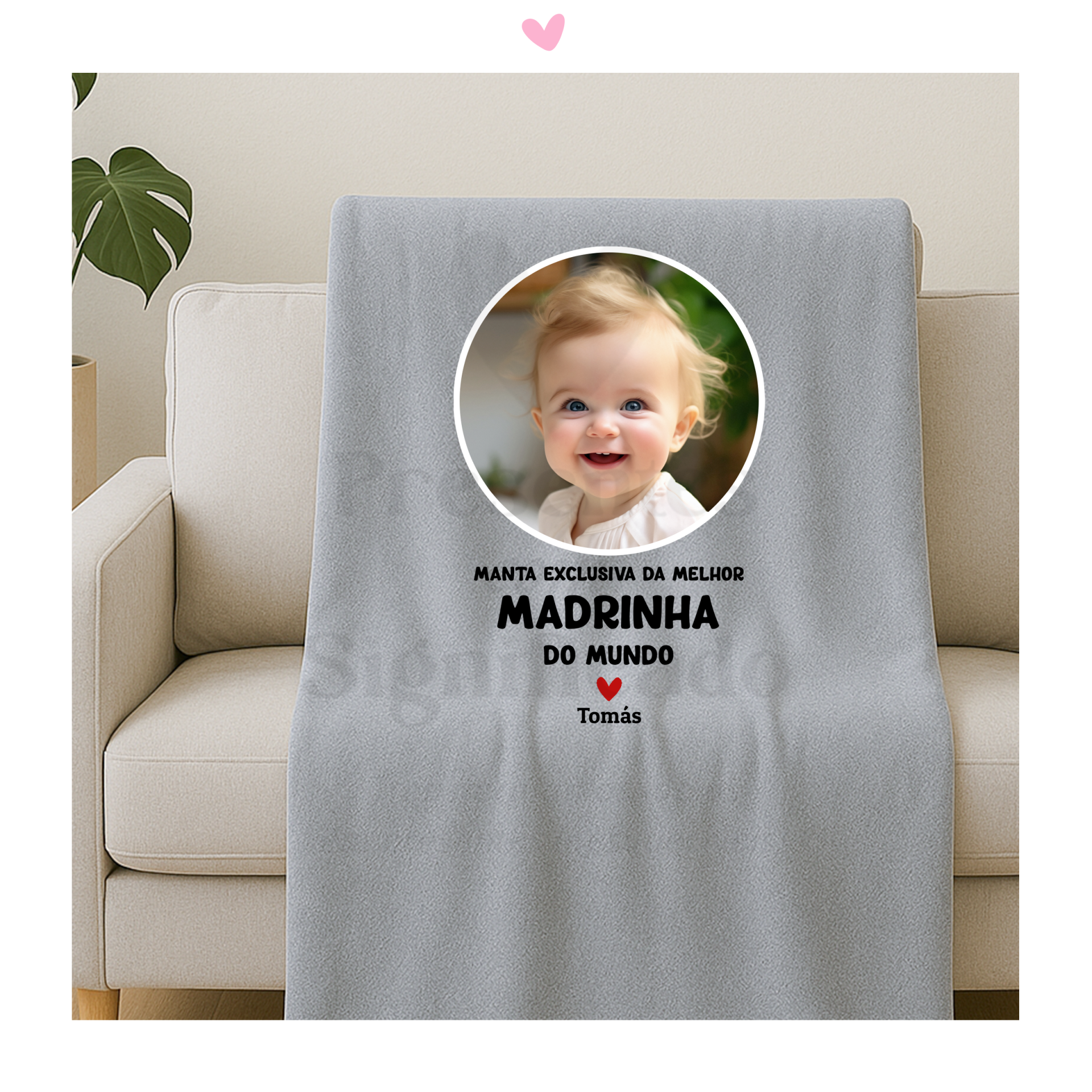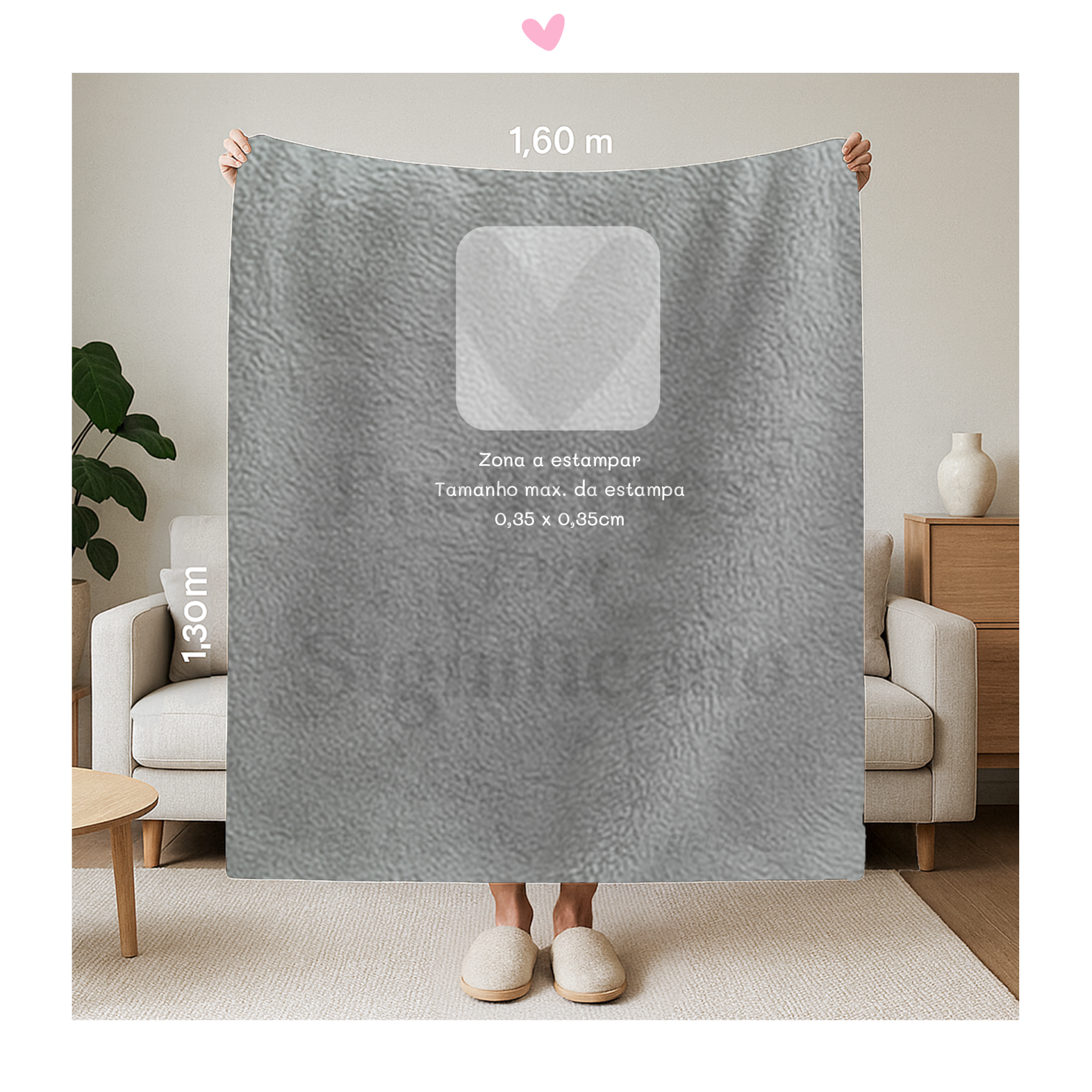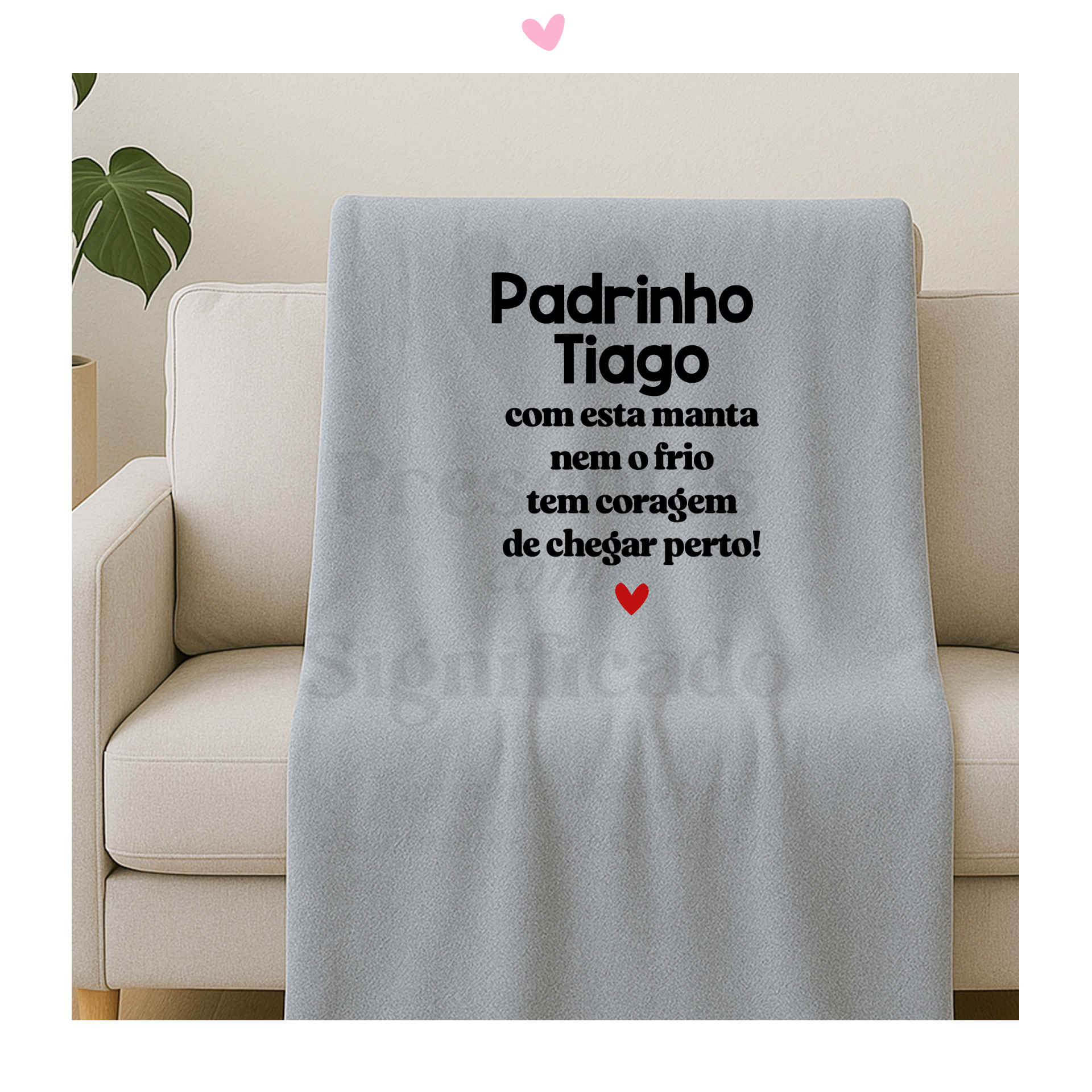 Manta polar com 1,60 x 1,30m, cor cinza, interior com pelinho mais comprido e personalizada com texto a seu gosto ou igual ao exemplo podendo (possível adiconar foto mediante custo extra).