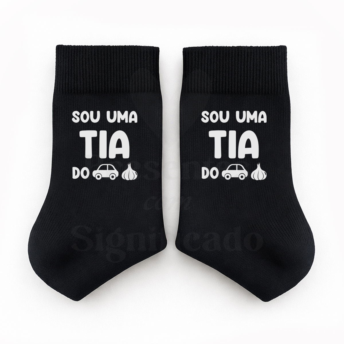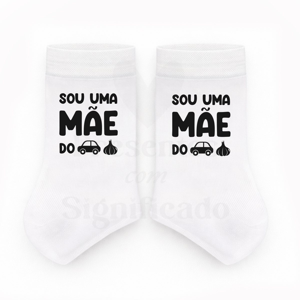 Par de meias brancas personalizadas com texto "Sou uma mãe do c*r*lho!". Possível adaptar para avó, tia, madrinha... Personalizadas na zona lateral da canela (área aproximada de 6x6cm).