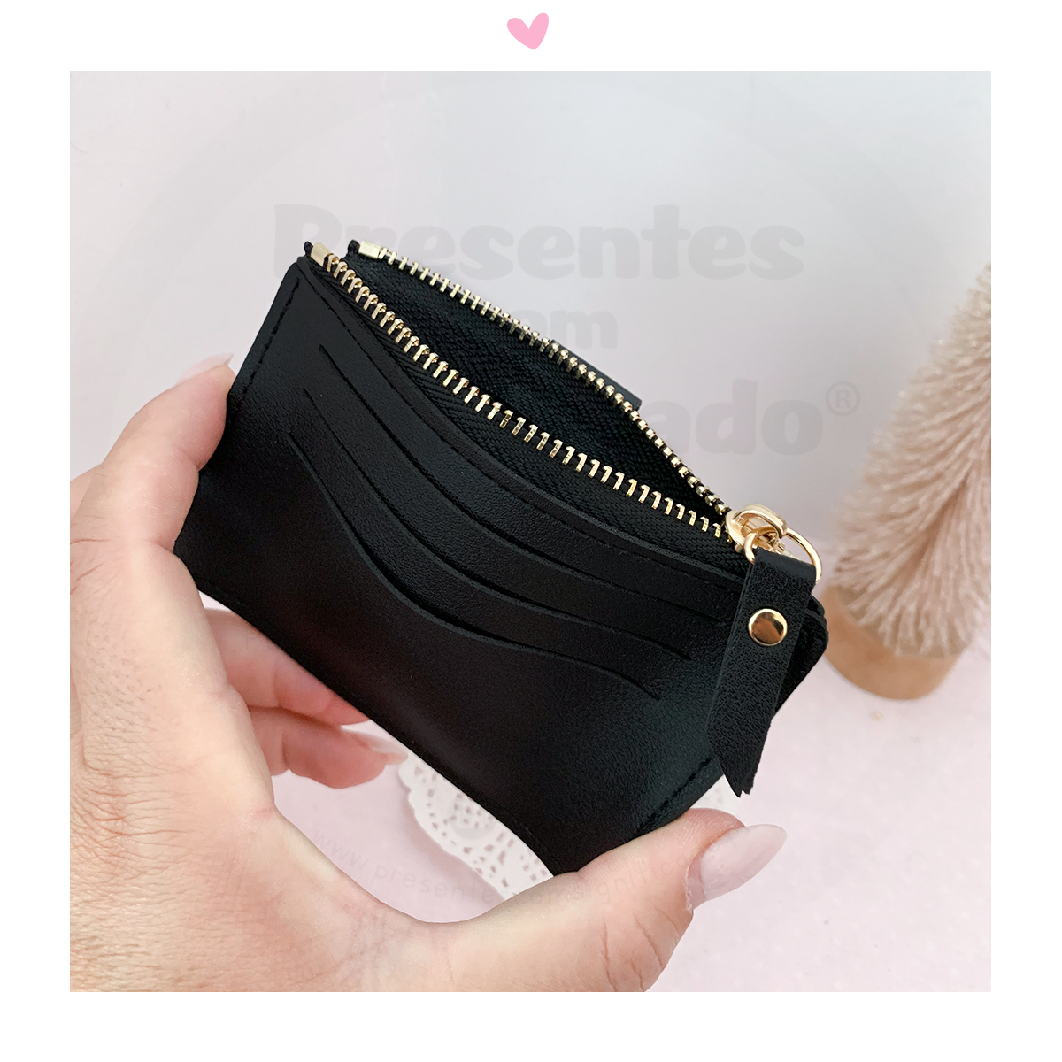 Mini-carteira preta em pele sintética personalizada