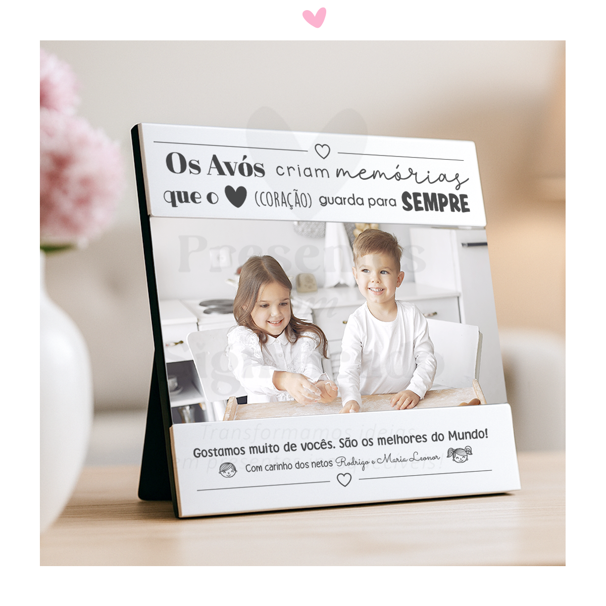 Moldura em alumínio e vidro tamanho 13,5cm c/ foto e gravação a gosto.