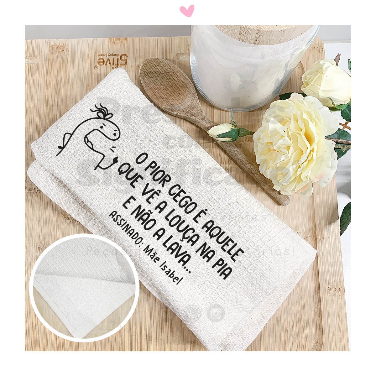 Pano de cozinha em tecido 100% algodão de fabrico nacional em tecido turco. Personalizado com texto "O pior cego é aquele que vê a louça na pia e não a lava!". Possivel adicionar nomes/datas ou personalizar com outros textos.