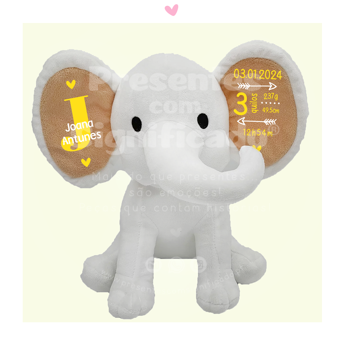 Home Peluches Peluche Elefante dados de nascimento (unisexo) Peluche Elefante dados de nascimento (unisexo) Nome/texto a gravar Data / Peso / Centímetros / Hora 17,90 € Desconto de %. IVA incluído. Compre este produto e ganhe 53 Pontos! Saber mais Comprar Contactar Adicionar à wishlist Peluche formato elefante com 25cm personalizado com nome da criança e respetivos dados de nascimento. Um presente lindo para decorar o quarto do bebé. Tags PelucheElefanteBebéMaternidadeNascimentoMenina Partilhar