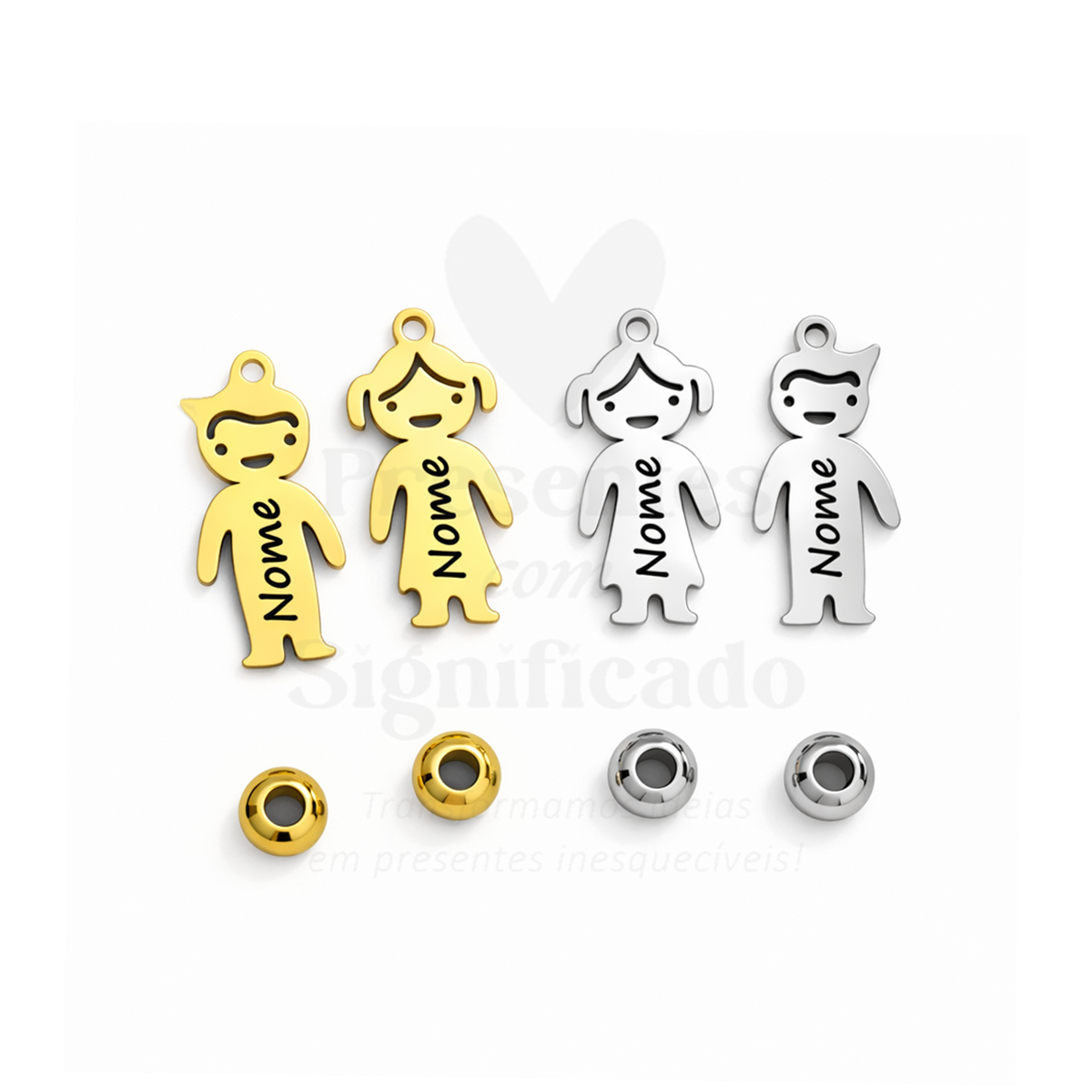 Sabemos que às vezes a família aumenta, por esse motivo, para quem já adquiriu o nosso colar com pendentes de meninos (este ou este modelo), temos disponível estes pendentes avulso gravados com nomes para que os possa adicionar ao seu colar actual. Cada pack inclui um boneco menino/a (com argola) + respectiva bola para criar o espaçamento necessário.