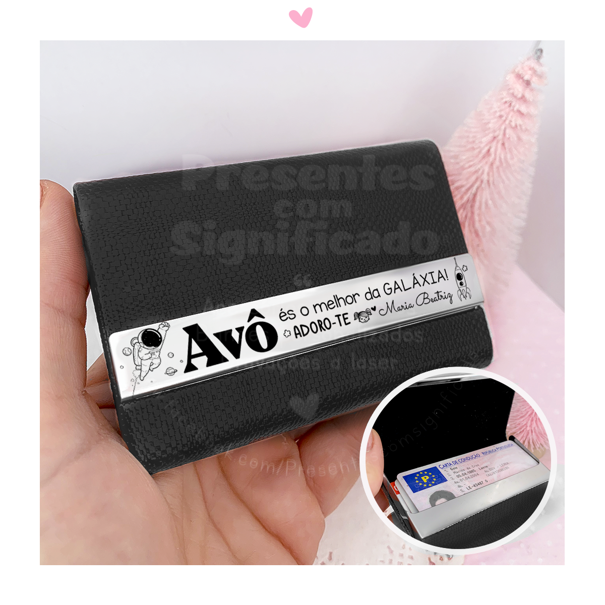 Home Utilitários Porta-cartões em pele sintética Porta-cartões em pele sintética Texto a gravar Adicionar caixinha presente com frase - 1,00 € 9,90 € Desconto de %. IVA incluído. Compre este produto e ganhe 29 Pontos! Saber mais O produto encontra-se sem stock. Adicionar à wishlist Porta-cartões em pele sintética e interior em veludo, gravado no exterior. Capacidade para 6-8 cartões tipo MB. Tamanho do produto: 9,5 x 6,5cm Tags Porta-cartõesPara eleUtilitárioArtigos úteisGravaçãoPersonalizadoVeludoMasculinoAté 10€Castanho Partilhar