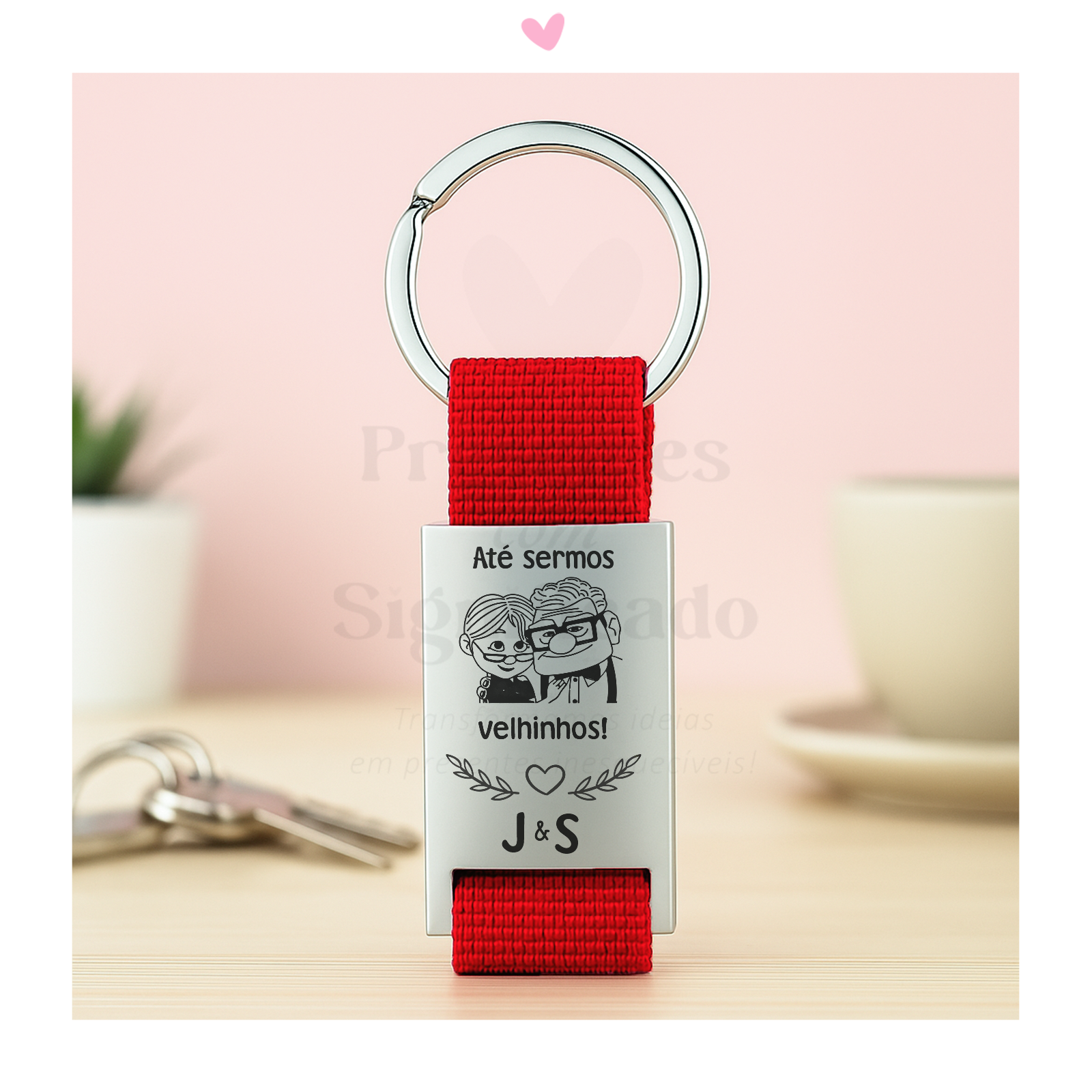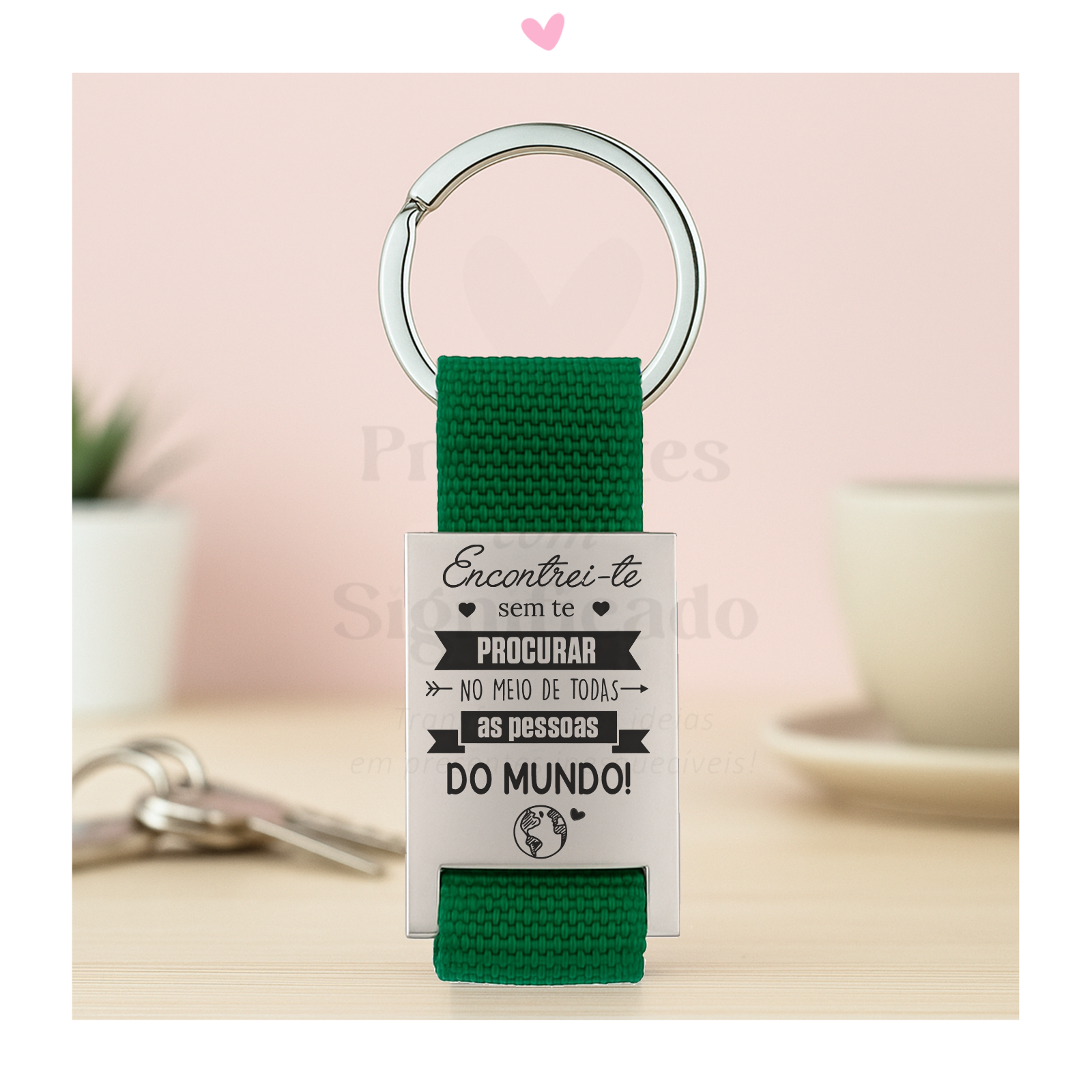 Porta-chaves com fita em nylon e metal c/ gravação personalizada (só frente ou frente e verso). Disponível em várias cores.