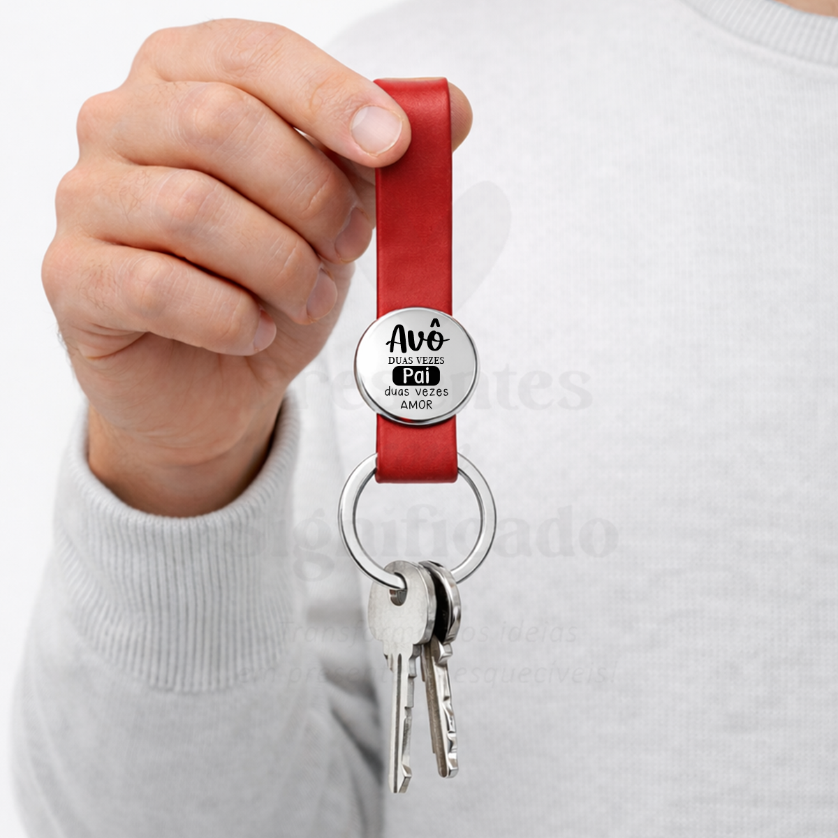 Porta-chaves com fita em silicone e entremeio de metal grosso c/ gravação personalizada de um lado e foto (ou outro texto) do outro.