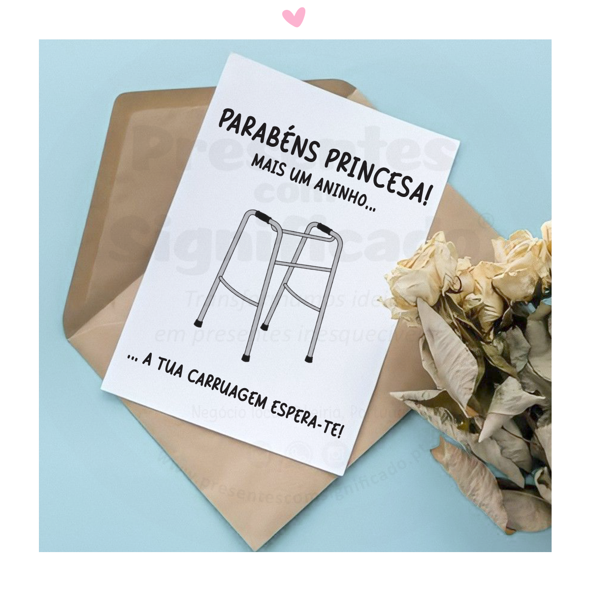 Postal de aniversário impresso em cartolina 300g. Atrás pode escrever uma pequena dedicatória á mão. Ideal para adicionar à sua encomenda tornando o seu presente mais personalizado, único e com sentido de humor :)