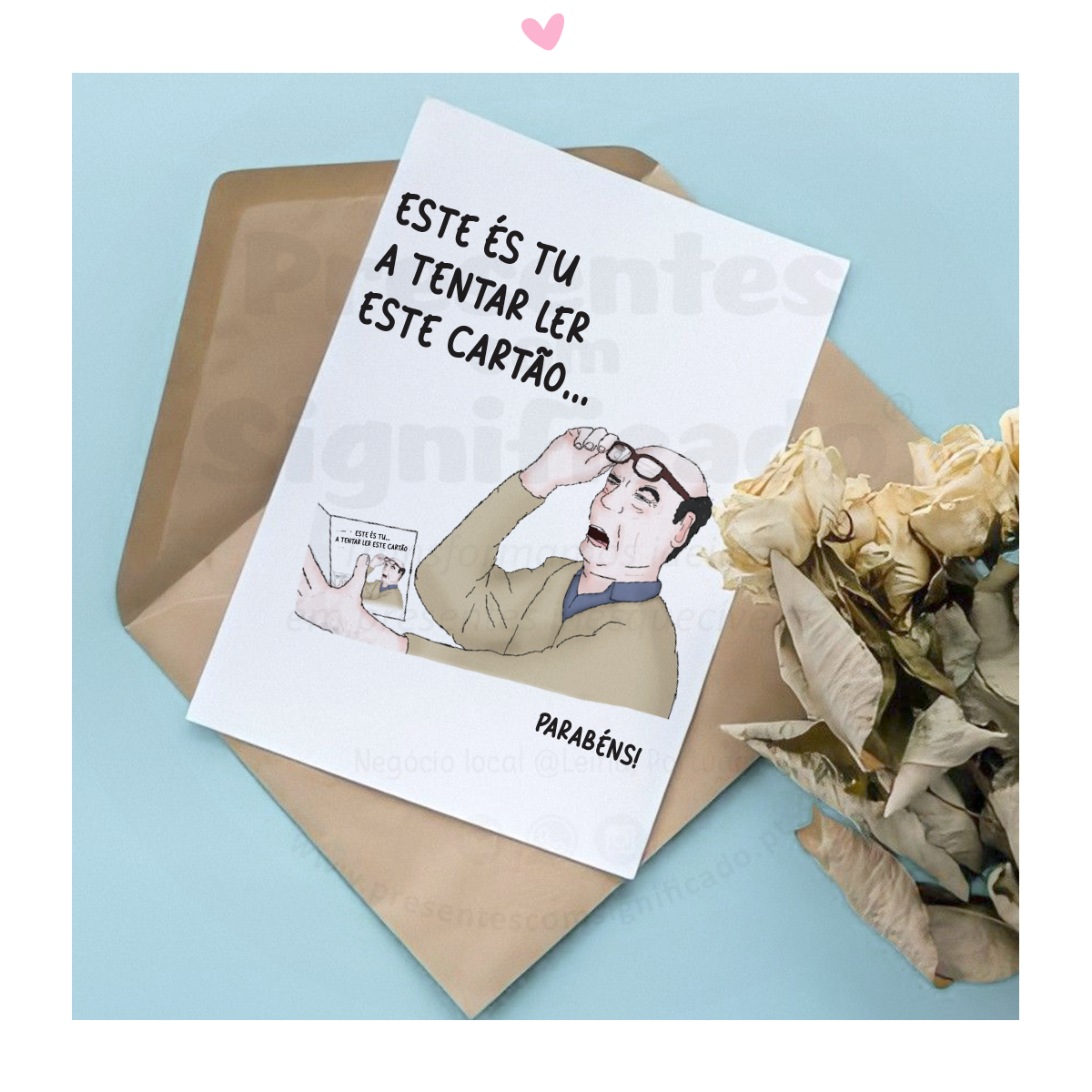 Postal de aniversário impresso em cartolina 300g. Atrás pode escrever uma pequena dedicatória á mão. Ideal para adicionar à sua encomenda tornando o seu presente mais personalizado, único e com sentido de humor :)