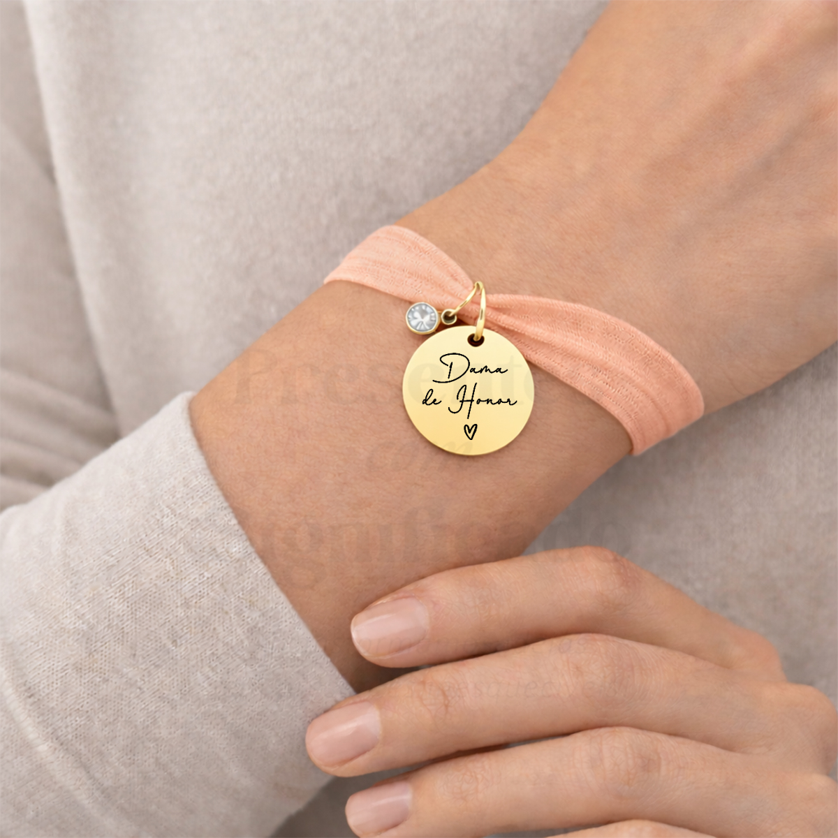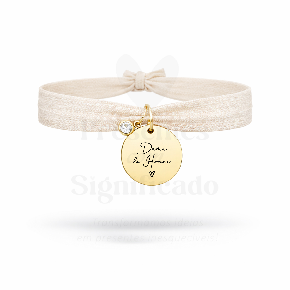 Pulseira elástica c/ medalha gravada (especial casamento)