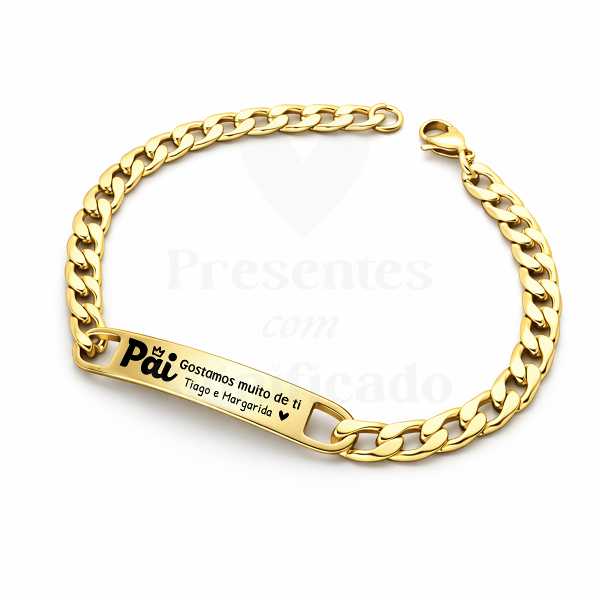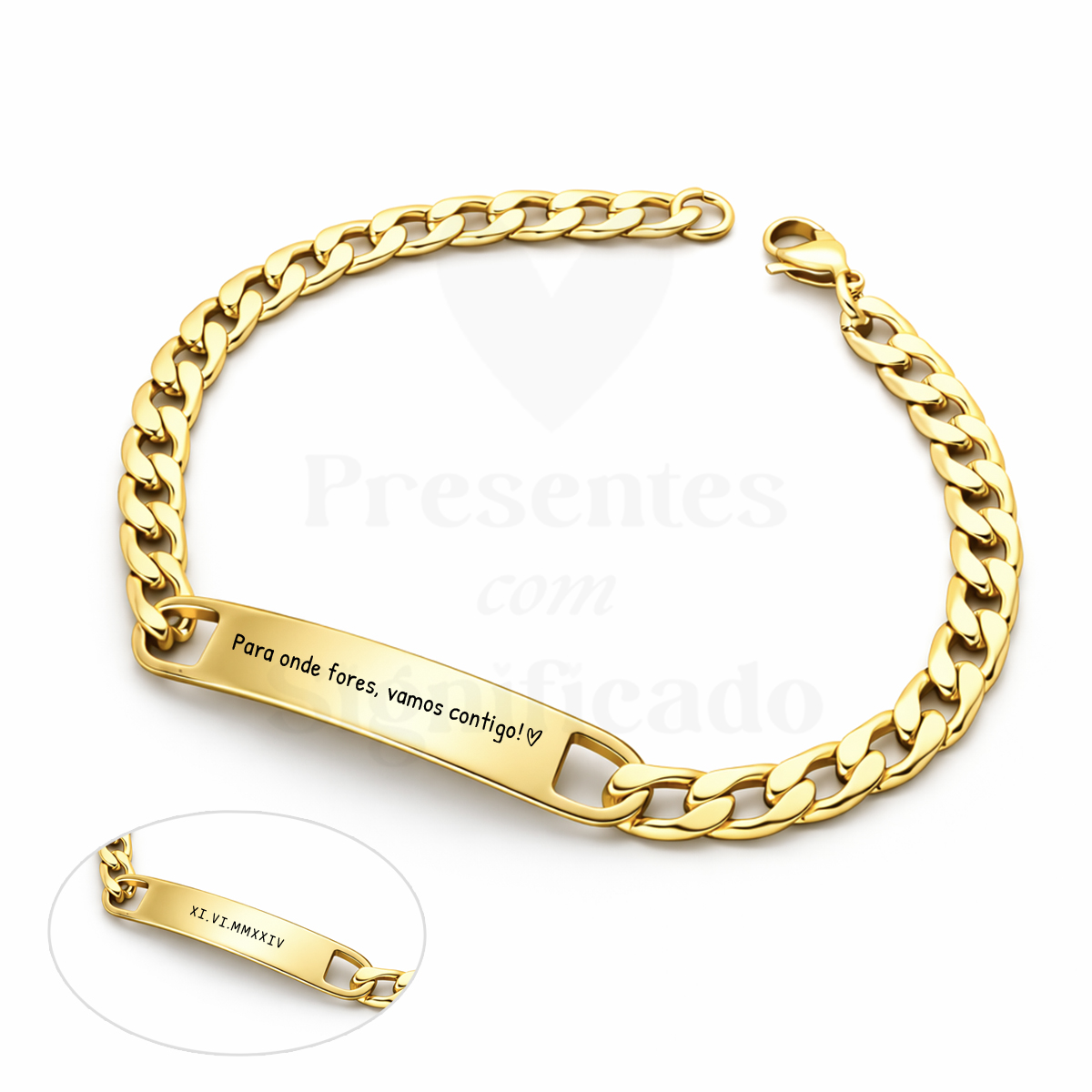 Pulseira masculina em aço dourado c/ gravação