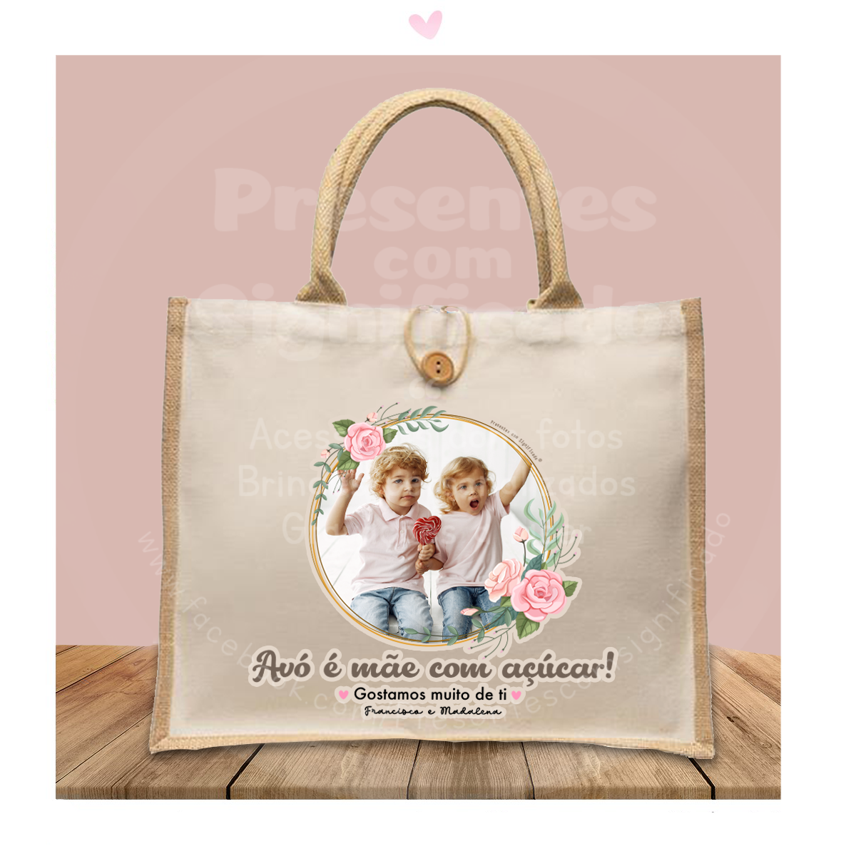 Saco de algodão c/ foto e texto