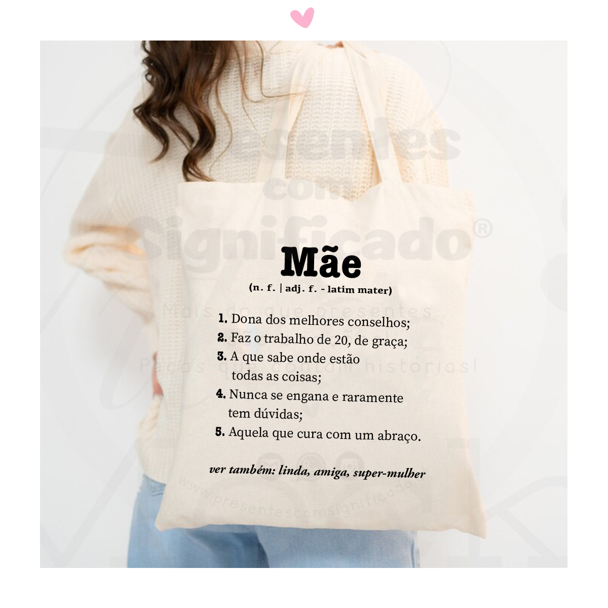 Saco/tote bag em algodão 180g de tecido crú com fole, personalizado com definição de Mãe. Pode personalizar com nomes no final ou criar a sua própria definição.
