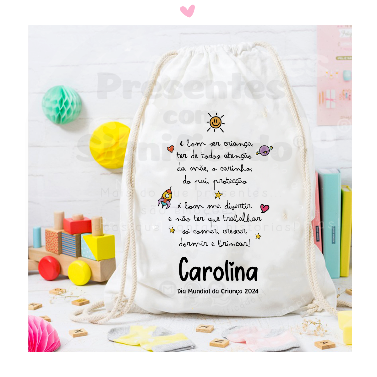 Saco/mochila com atilhos - É bom ser criança...