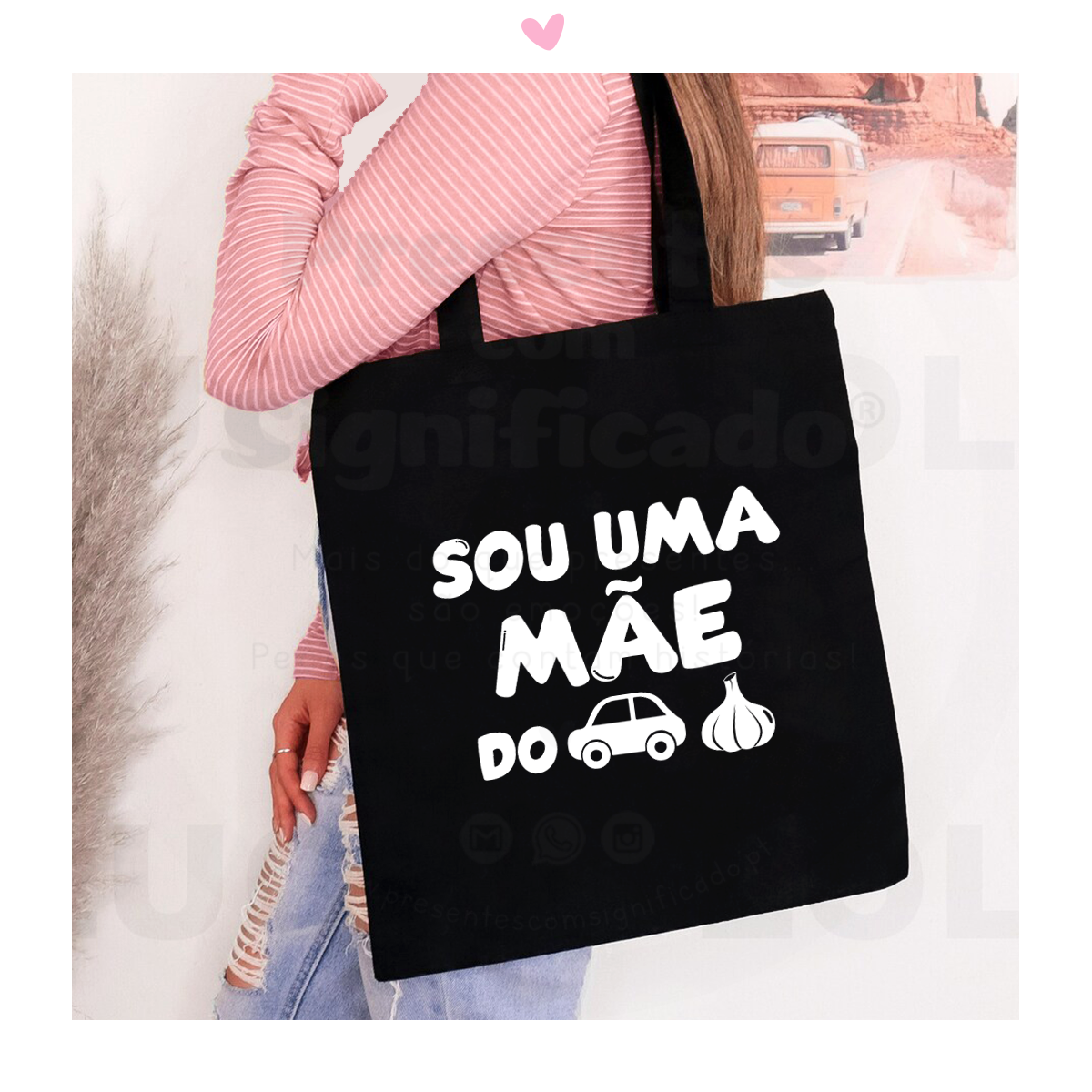 Saco/tote bag em algodão 220g de tecido preto com fole, personalizado com texto "Sou uma mãe do c*r*lho". Ideal para transportar compras devido ao seu espaço interior.