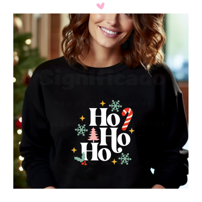 Sweatshirt preta com design natalício. Em algodão e poliéster de 280g, possui gola dupla, punhos e cós reforçados em canelado com elastano. Possível adicionar nome.